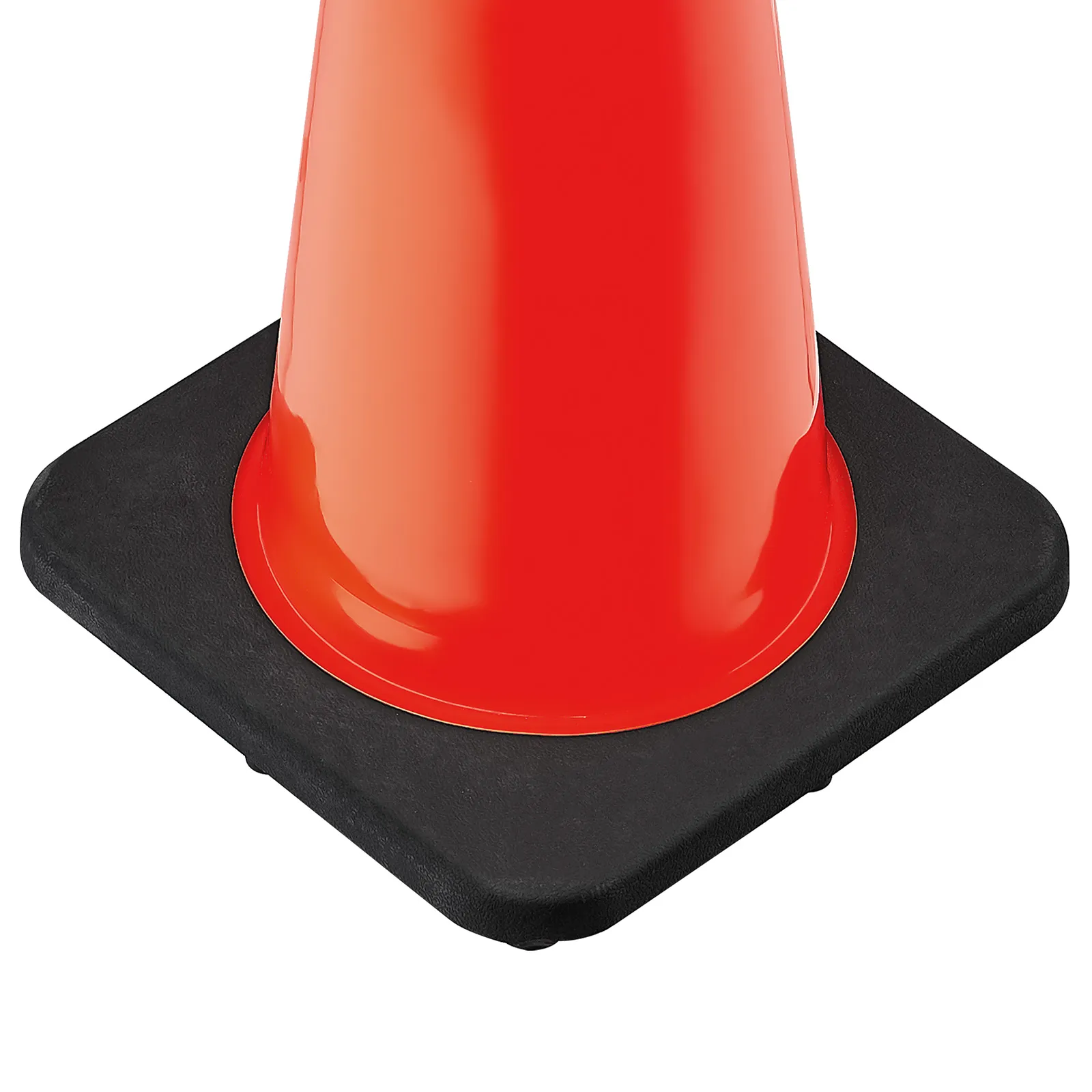 • Durable PVC Material: Our 36-inch safety cones are made of PVC material that is both flexible and sturdy. The traffic cones not only endure moisture, oil, and extreme temperatures but can also stand up to heavy loads and harsh weather. Even at conditions between 55 °C and -20 °C, it will not deform.