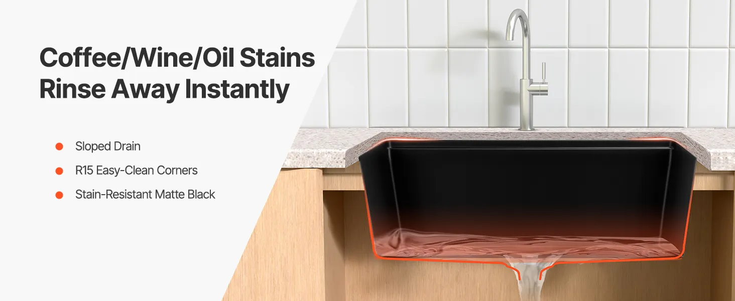 Q: Is the material of this sink easy to clean and maintain?A:Yes! The 80% quartz sand + 20% resin composite surface is non-porous, which is not easy for stains and water spots remaining. Simply wipe with a damp cloth. The matte black finish hides smudges for easy maintenance.Q: Will the sink get damaged easily during shipping?A: The packaging is certified with stacking/vibration/drop tests with double-wall cartons and EPE foam inserts, providing extra guarding.Q: Does installation require a professional?A: The pre-cut template and mounting clips guide precise alignment. The design of workstation sink simplifies installation—even beginners can do it with the step-by-step manual.