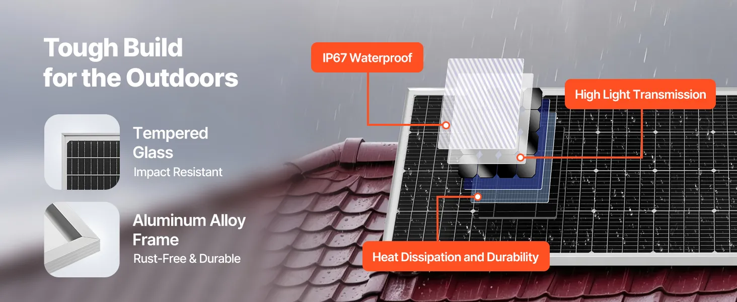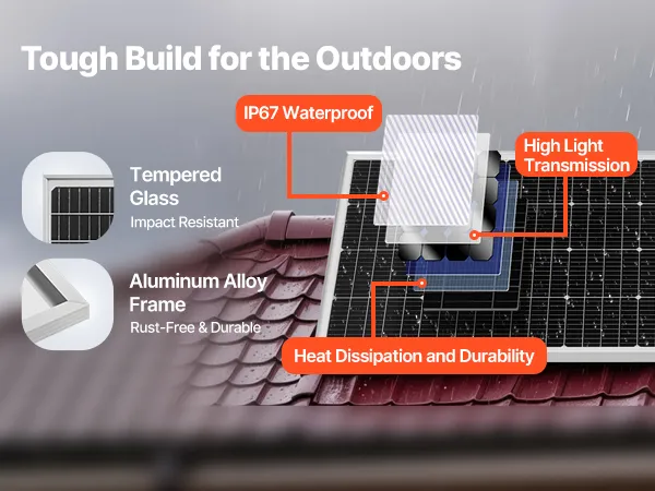 High-efficiency monocrystalline solar cells ensure superior energy conversion. IP67 waterproof rating makes them reliable for long-term outdoor use.