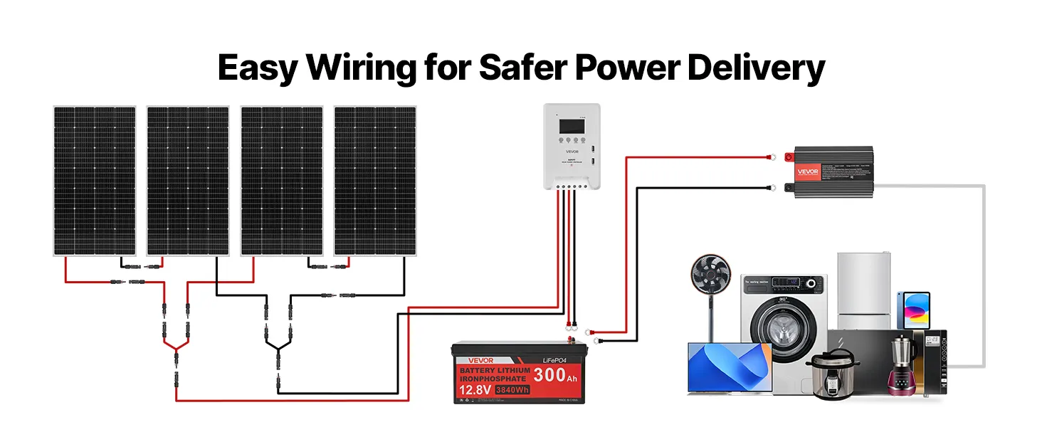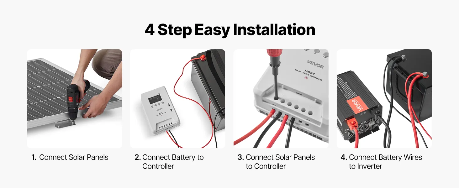 Includes detailed wiring instructions, allowing you to quickly connect the battery, solar panels, controller, and inverter.