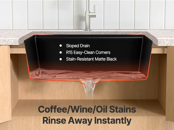 Q: Is the material of this sink easy to clean and maintain?A:Yes! The 80% quartz sand + 20% resin composite surface is non-porous, which is not easy for stains and water spots remaining. Simply wipe with a damp cloth. The matte black finish hides smudges for easy maintenance.Q: Will the sink get damaged easily during shipping?A: The packaging is certified with stacking/vibration/drop tests with double-wall cartons and EPE foam inserts, providing extra guarding.Q: Does installation require a professional?A: The pre-cut template and mounting clips guide precise alignment. The design of workstation sink simplifies installation—even beginners can do it with the step-by-step manual.