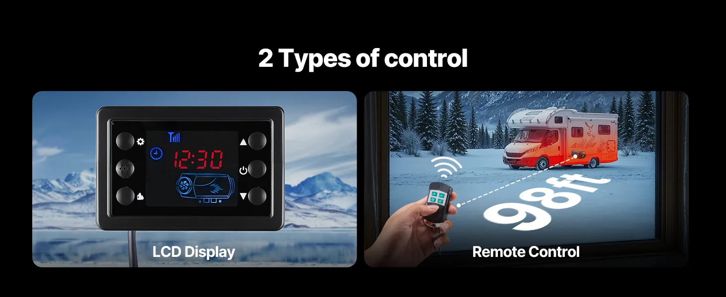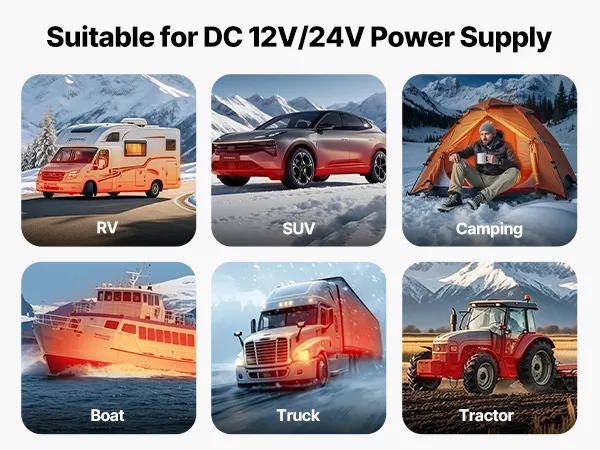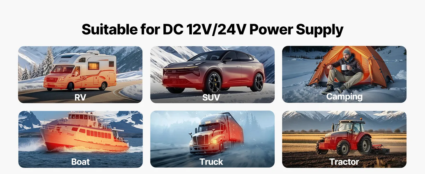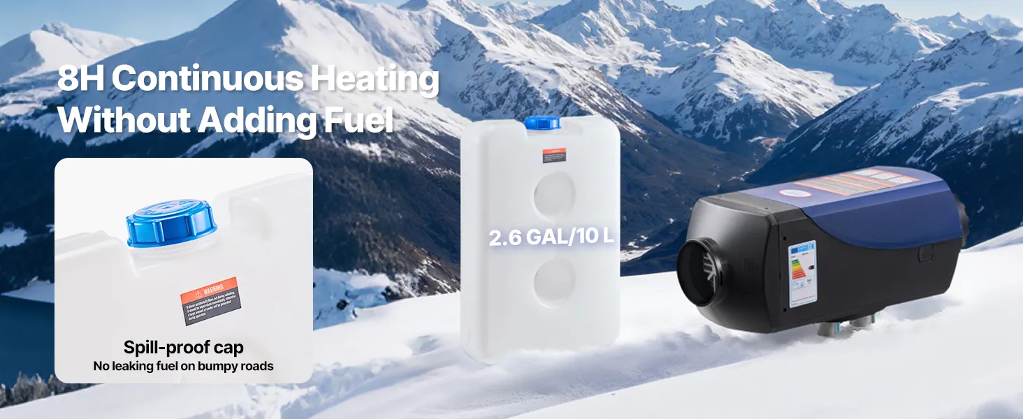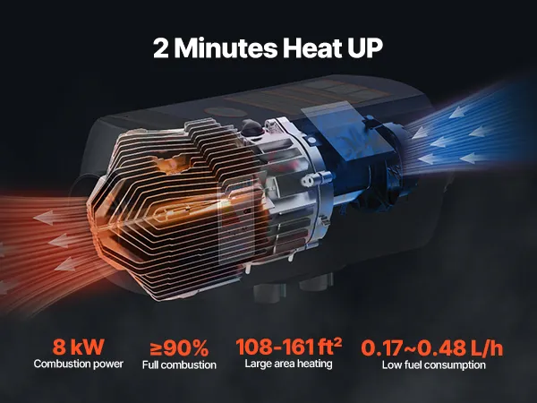 This 8KW diesel air heater supports 12V/24V power, making it ideal for RVs, trucks, SUVs, camper vans, and cargo vehicles. It delivers fast reliable heating even in freezing weather and is designed to warm up large spaces efficiently. It maintains extended heat output without excessive fuel use.
