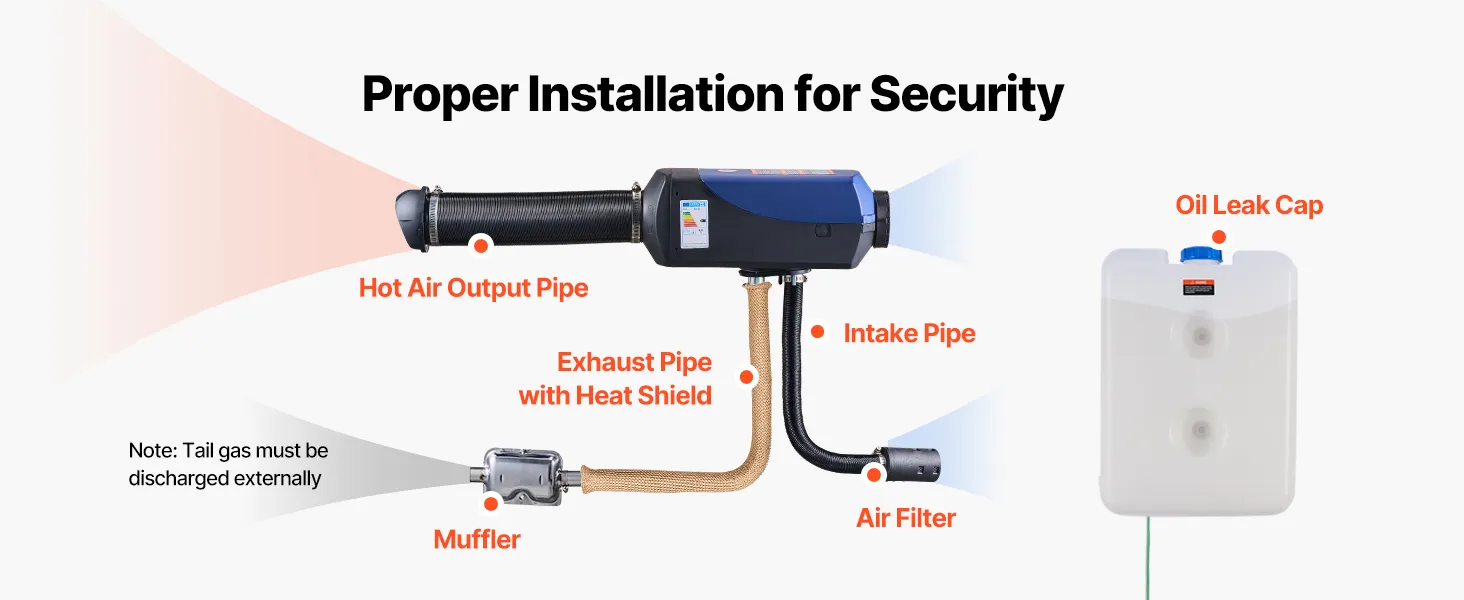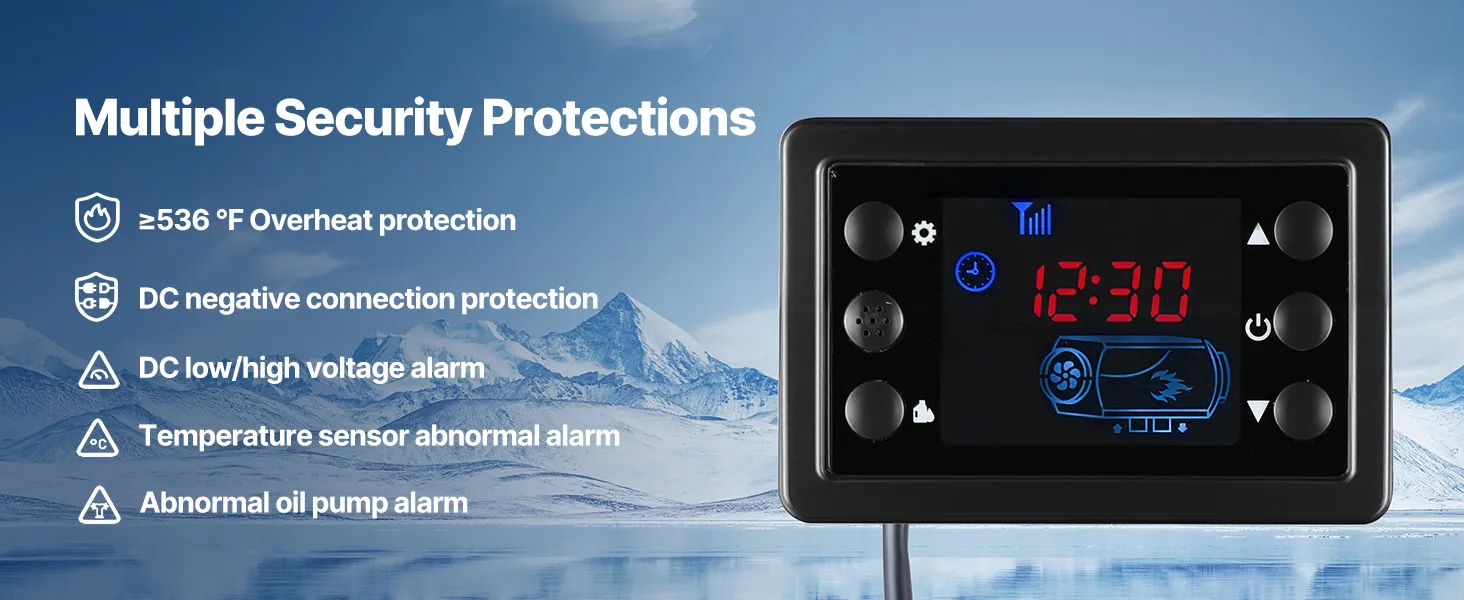 The aluminum heating body ensures excellent thermal conductivity, helping the diesel fuel heater warm cold air faster and deliver more efficient heat output.