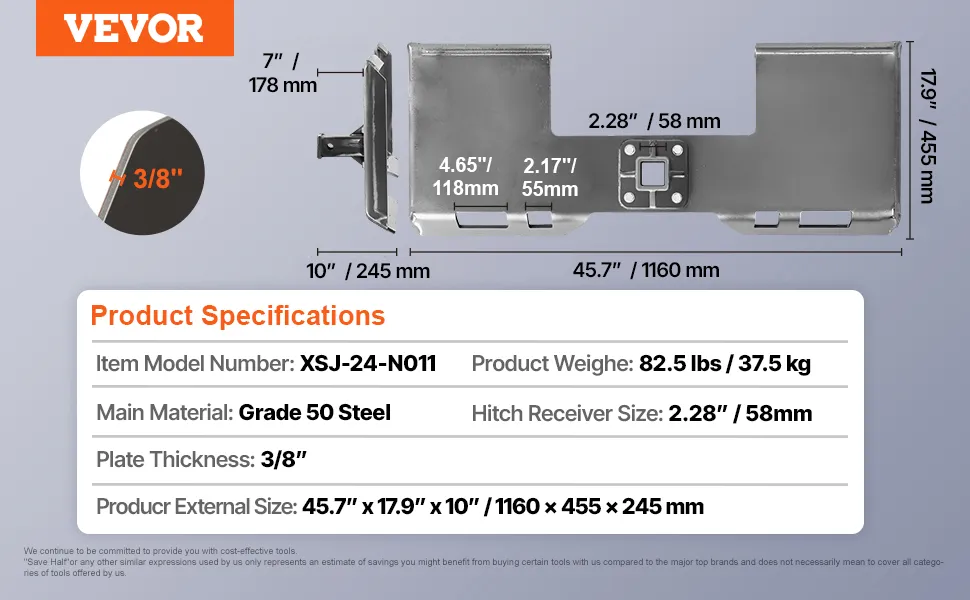 VEVOR Skid Steer Attachment Plate, 3/8" Skid Steer Mount Plate with 2.28" Hitch Receiver, Quick Attachment Loader Plates, Compatible with Deere, Kubota, Bobcat, Mahindra Skids Steers, Tractor