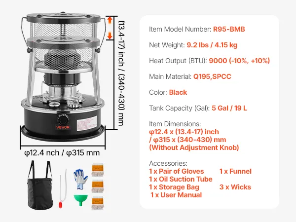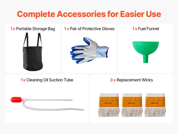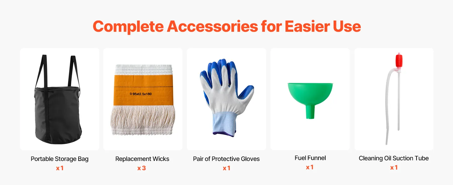 Comes with a variety of practical accessories for convenient setup and flexible use. Combine them as needed to get the most out of your kerosene heater.