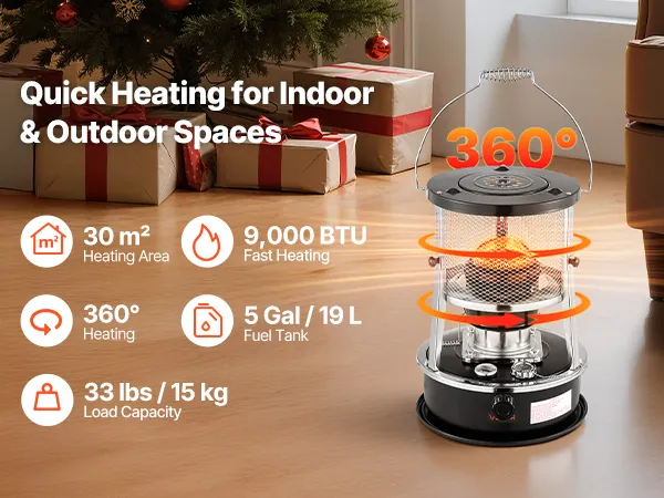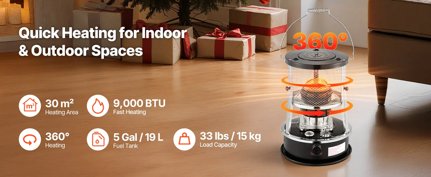 Delivers strong, consistent heat in just minutes. Ideal for indoor living rooms or outdoor camping. With low operating noise and high power, this kerosene forced air heater keeps large spaces warm and comfortable.
