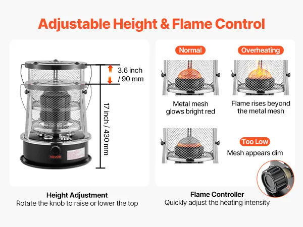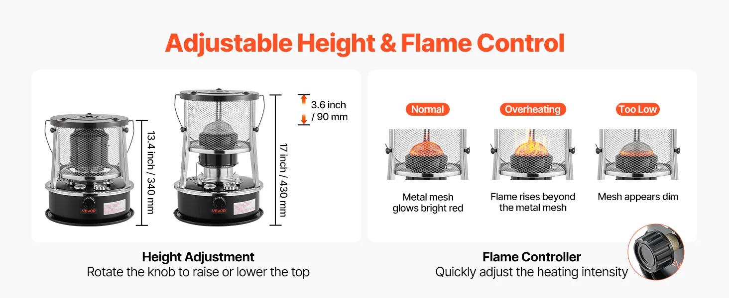 Easily adjust the heat output using the control knob. Monitor the flame to find the right level for different weather conditions—this kerosene space heater adapts to your year-round heating needs.