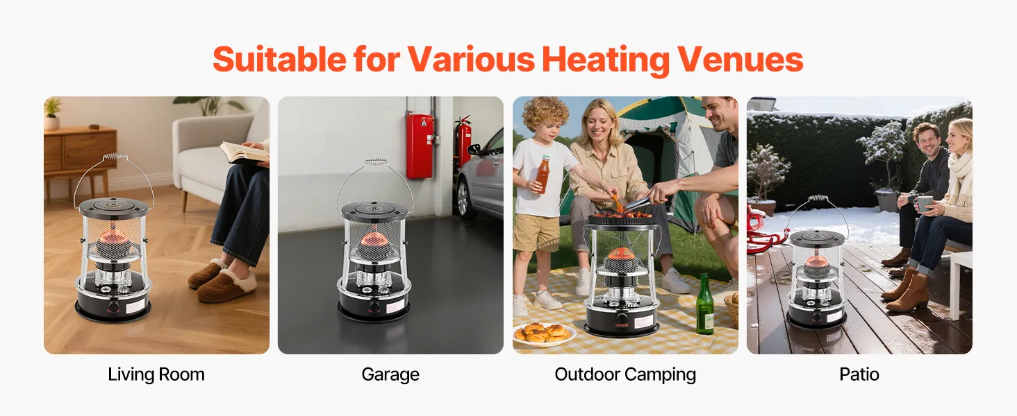 Whether you're in a garage, living room, tent, or campsite, this radiant kerosene heater provides reliable heating for open or enclosed spaces with minimal setup.