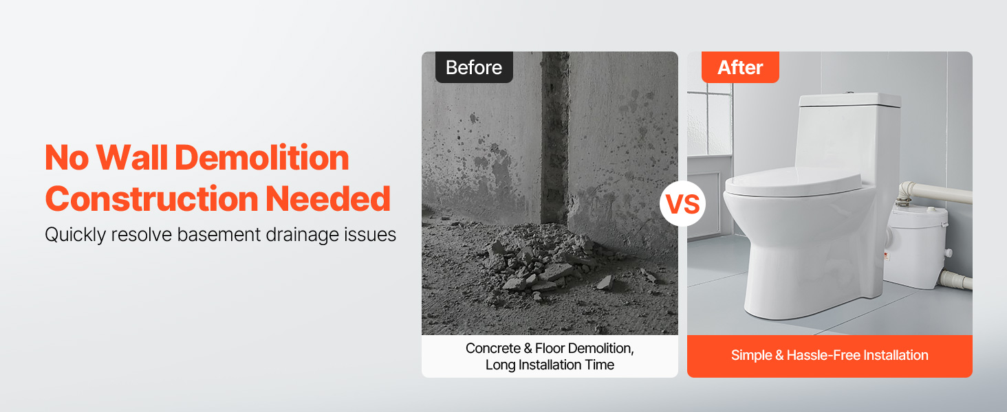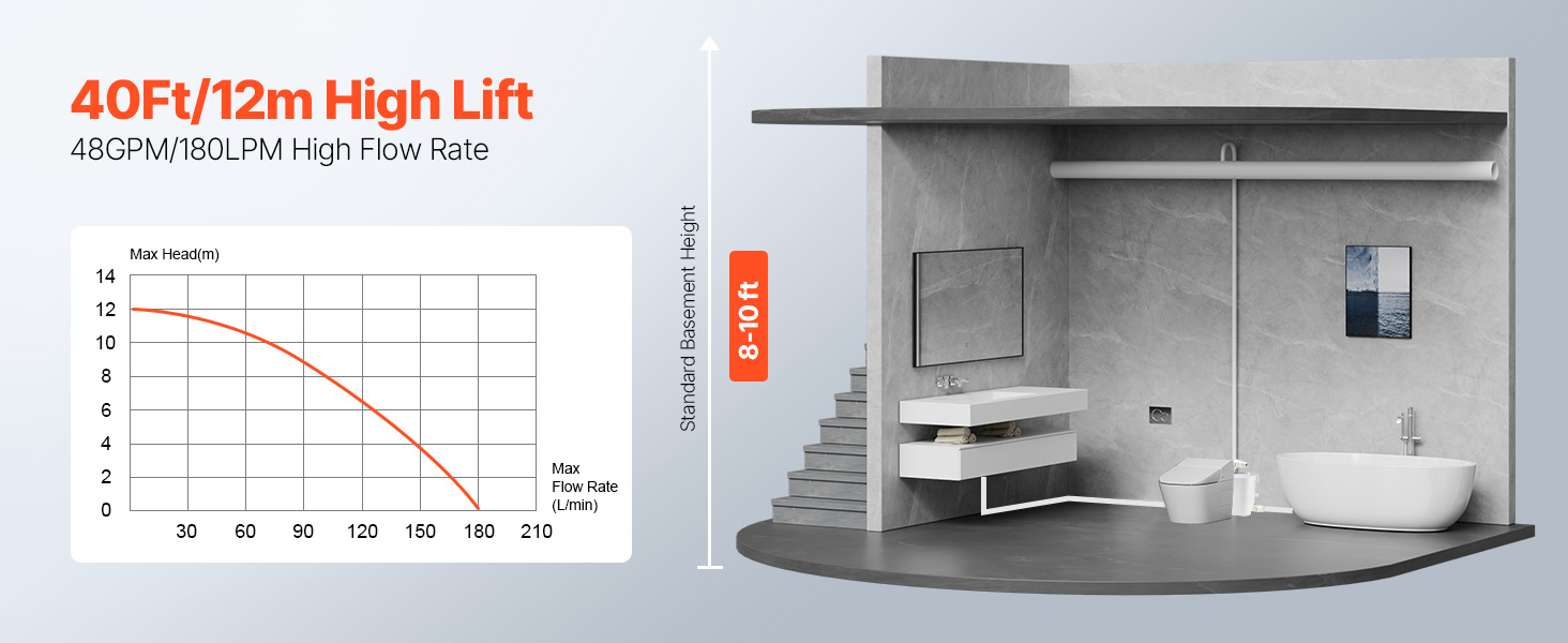 Need a fast and hassle-free way to dispose of wastewater? This macerator pump delivers a powerful 900W copper motor, 40 ft high lift, and 48 GPM large flow, handling sewage with ease. Ideal for your toilet, bathtub, shower, and laundry, it's a reliable solution for smooth drainage.