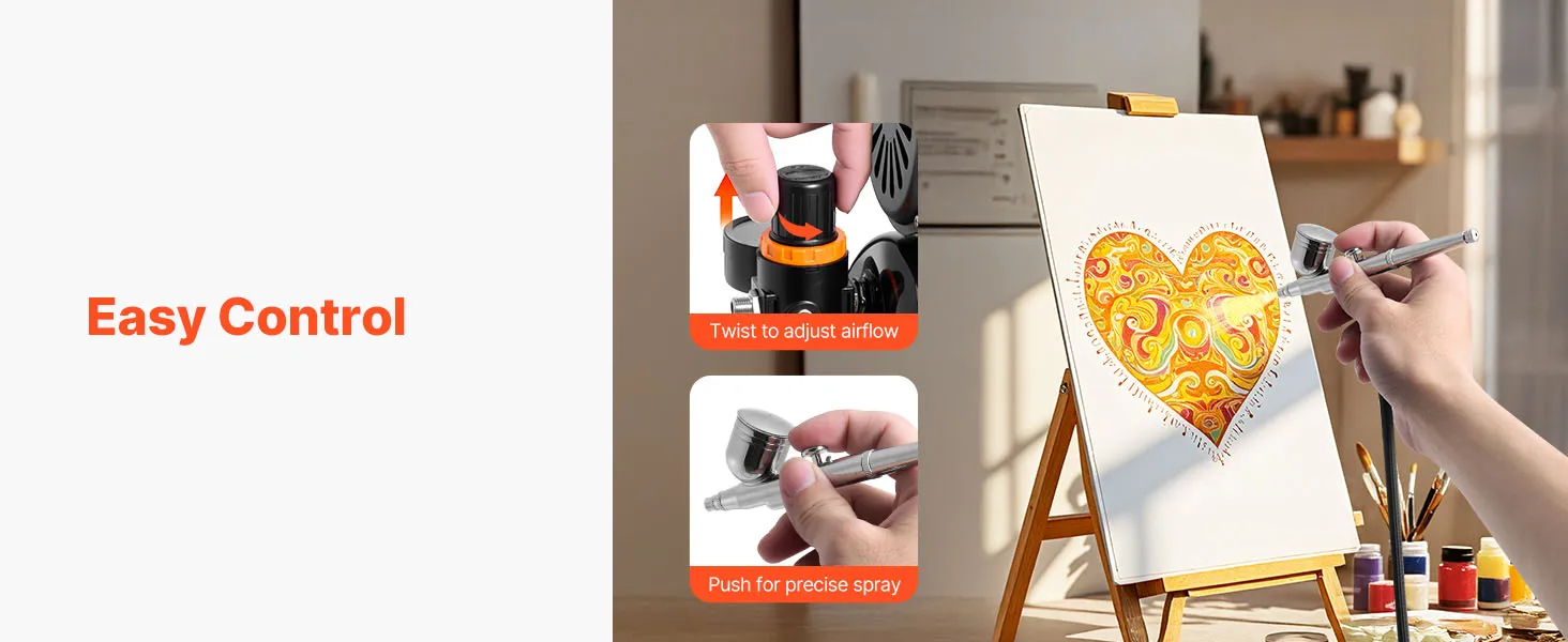 The dedicated holder of the air brush kit keeps your airbrush secure and organized, avoiding messy setups and ensuring a tidy workspace.