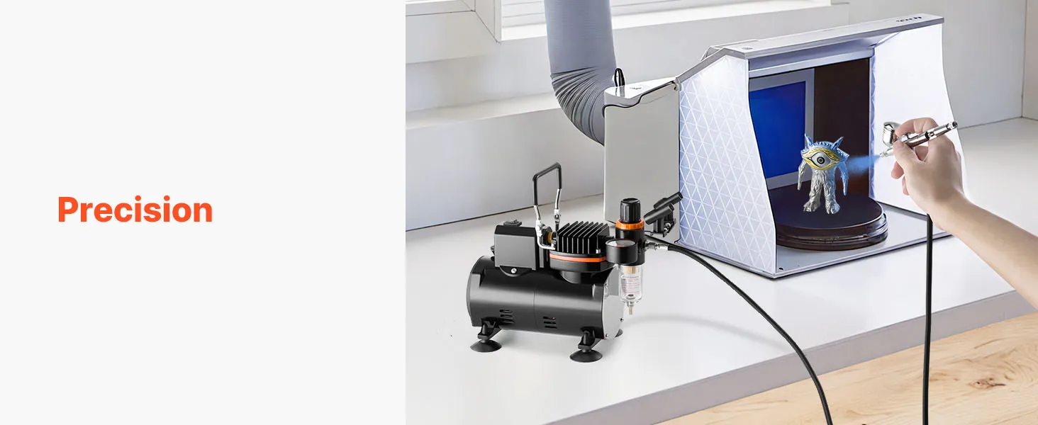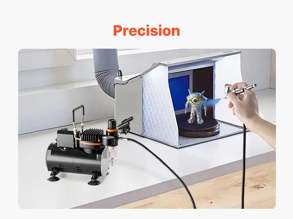 The dedicated holder of the air brush kit keeps your airbrush secure and organized, avoiding messy setups and ensuring a tidy workspace.