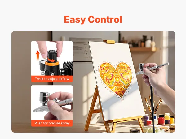 VEVOR Airbrush Kit, 1/6 HP, Air Brush Kit with Air Compressor, 1 Dual-Action Professional Airbrush with 3 Tips, Hose, Holder, Cleaning Set, Low Noise, for Cake Decorating, Model Painting, Nail Art