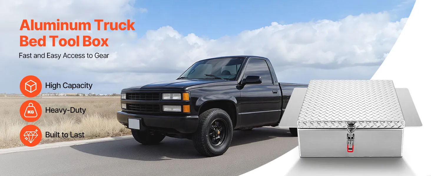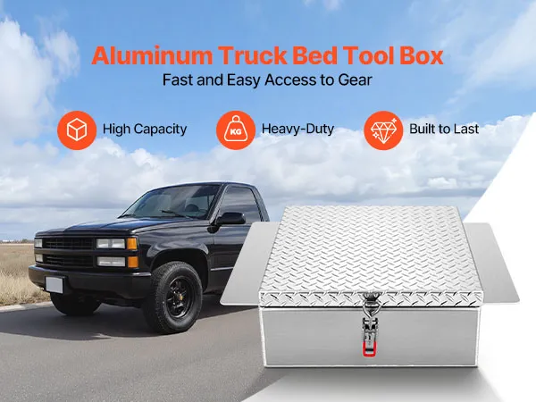 VEVOR Truck Bed Tool Box, Heavy Duty Aluminum Tool Box with Diamond Plate, Storage Toolbox Chest Organizer Supports up to 100 kg, Ideal for Pickup, Truck Bed, RV, Trailer, 770 x 610 x 230 mm, Silver