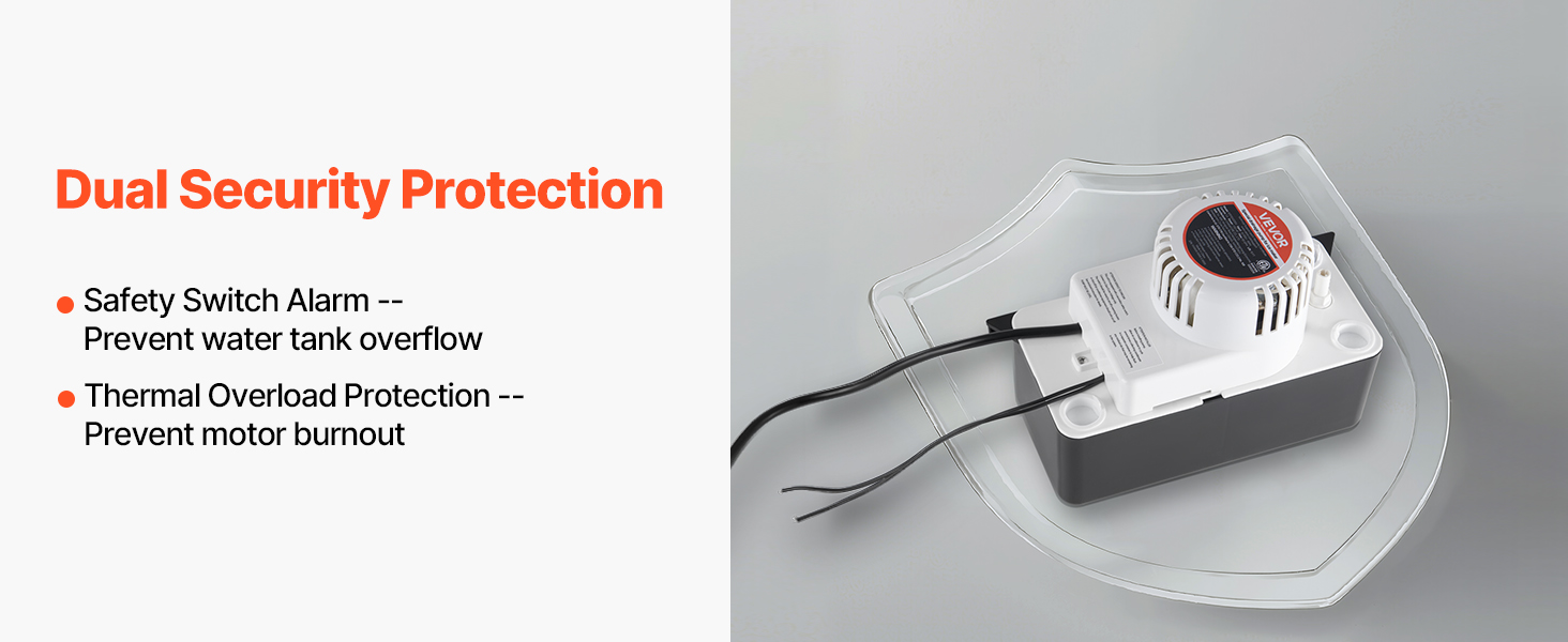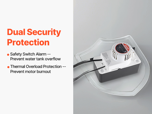 VEVOR Condensate Removal Pump, 1/50 HP, 65 GPH, 15ft/4.57m Lift, 1/2 Gal Tank Automatic AC Condensation Pump with Float Switch & 20 ft Hose for Air Conditioner, Dehumidifier, Furnace, Ice Maker Water Drain