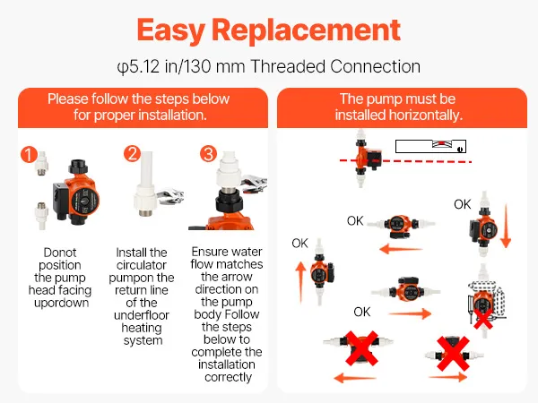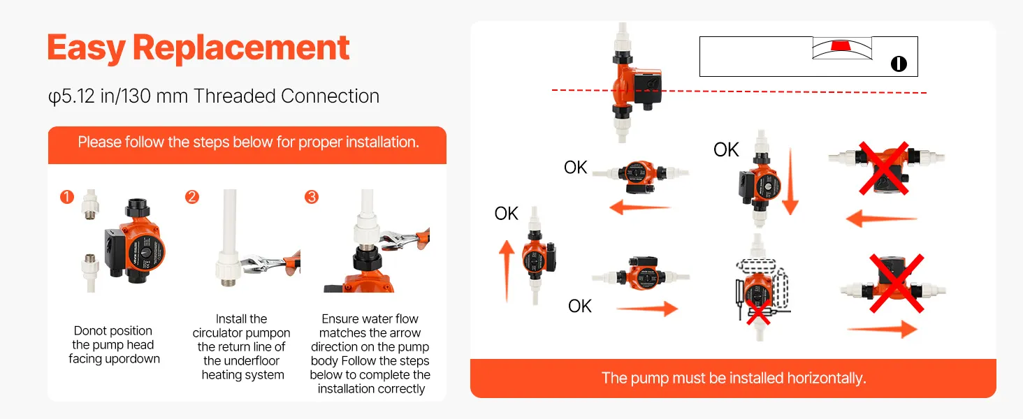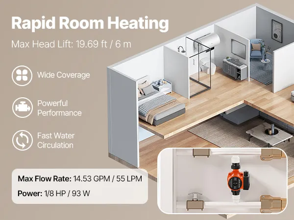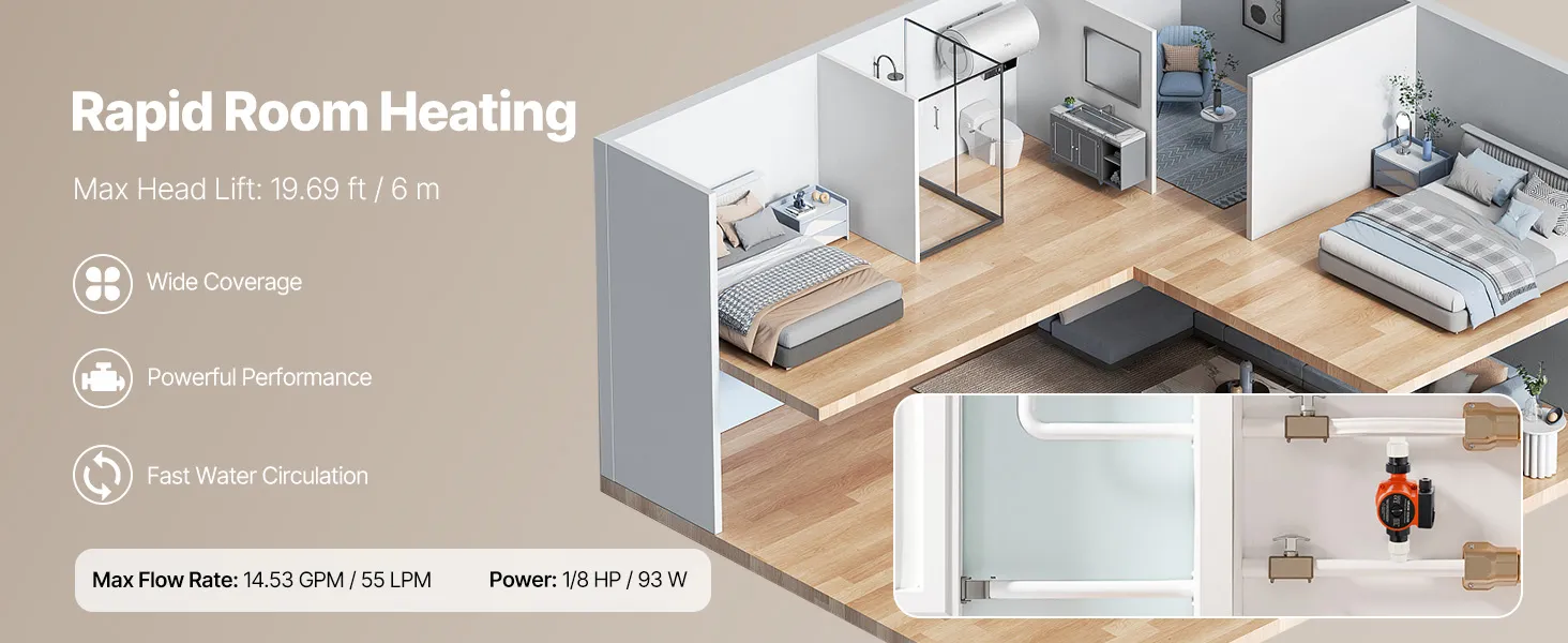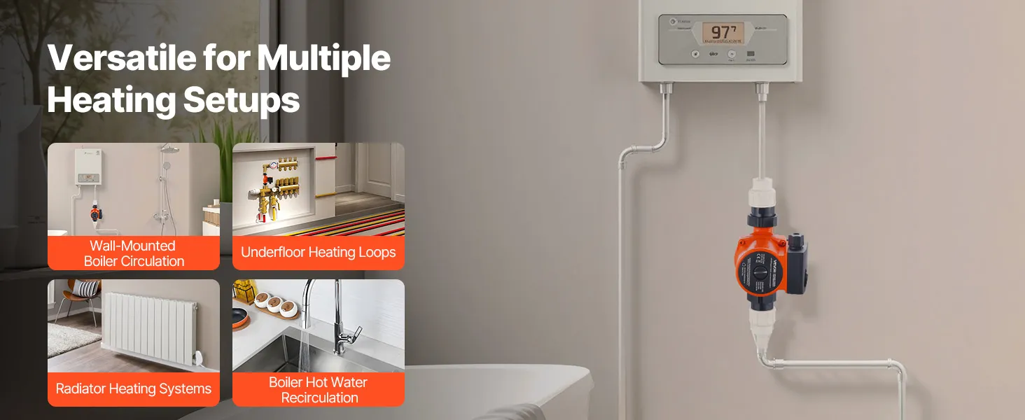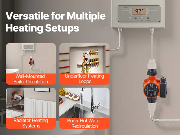 Our hot water pump is compatible with various heating equipment, such as underfloor heating, radiators, wall-hung boilers, and boilers, easily meeting hot water circulation needs in different scenarios.