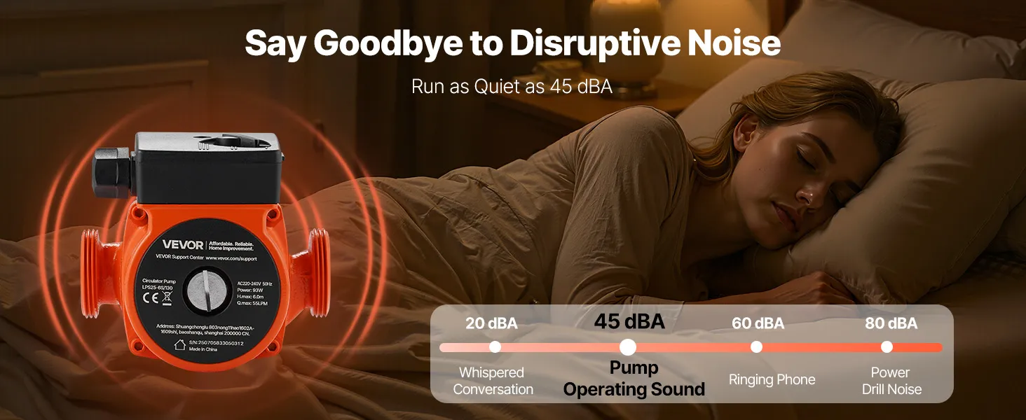 This hot water circulation pump performs excellently in noise control, with an operating noise of 45 dBA. It won't disturb your daily life or work environment, avoiding discomfort caused by noise while ensuring the hot water circulation system runs smoothly and quietly.