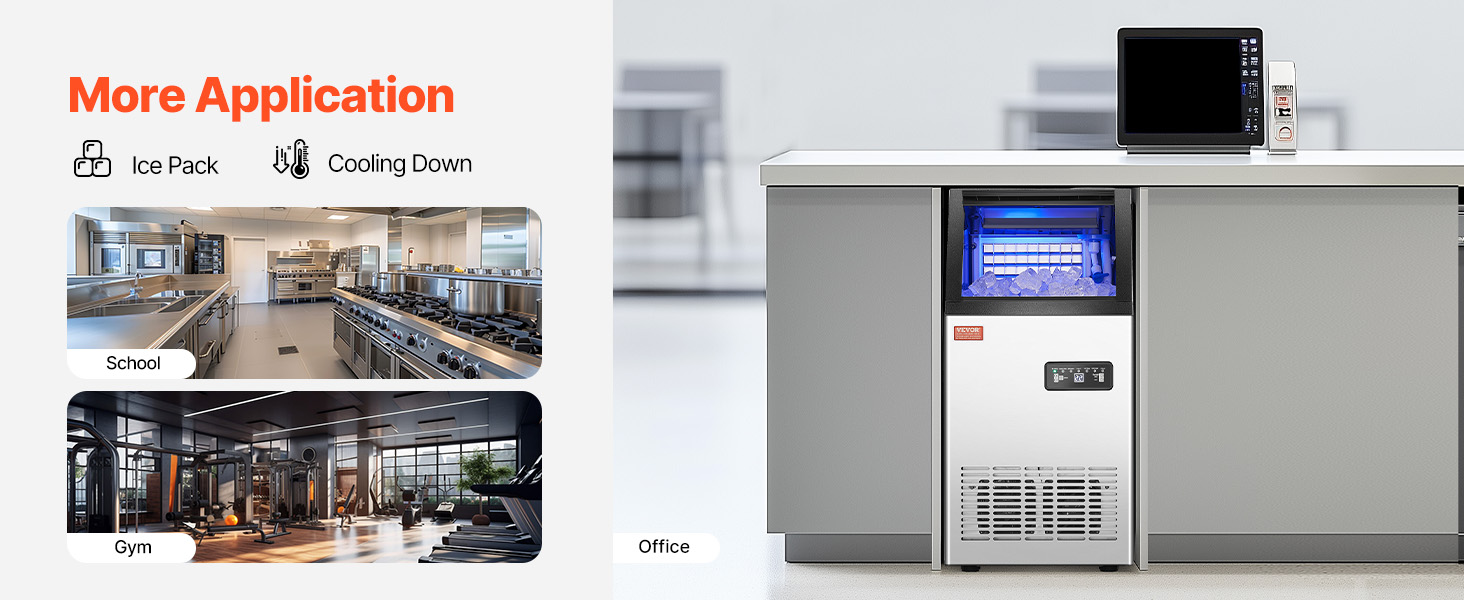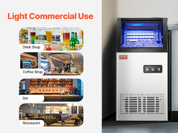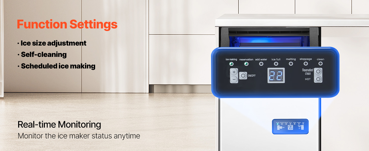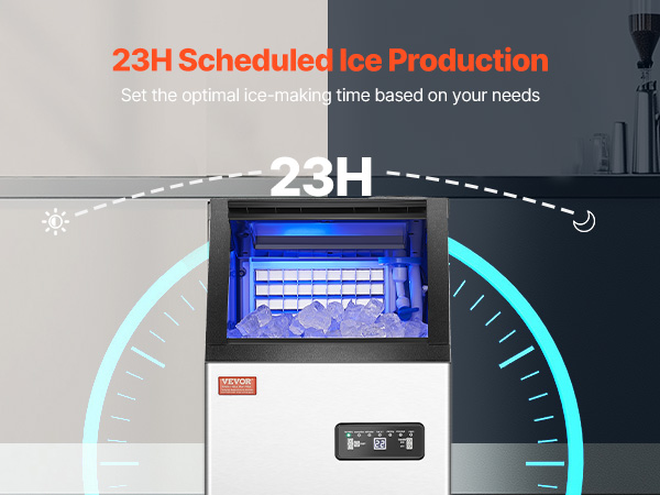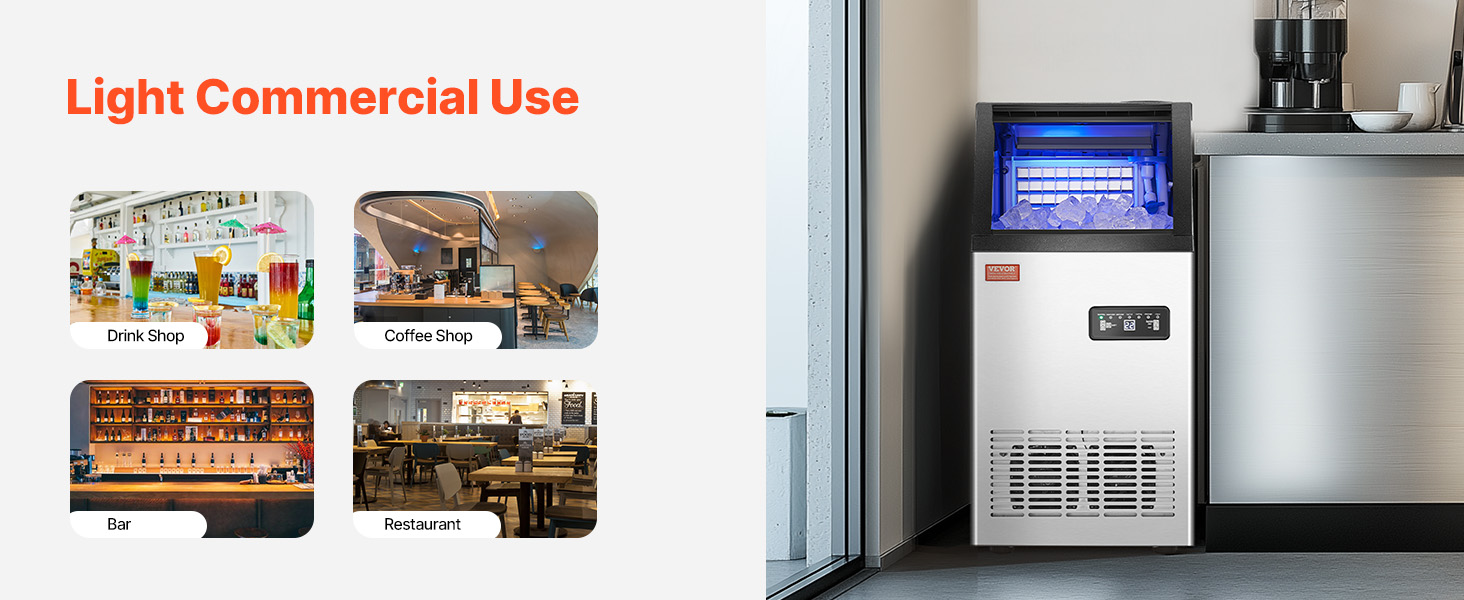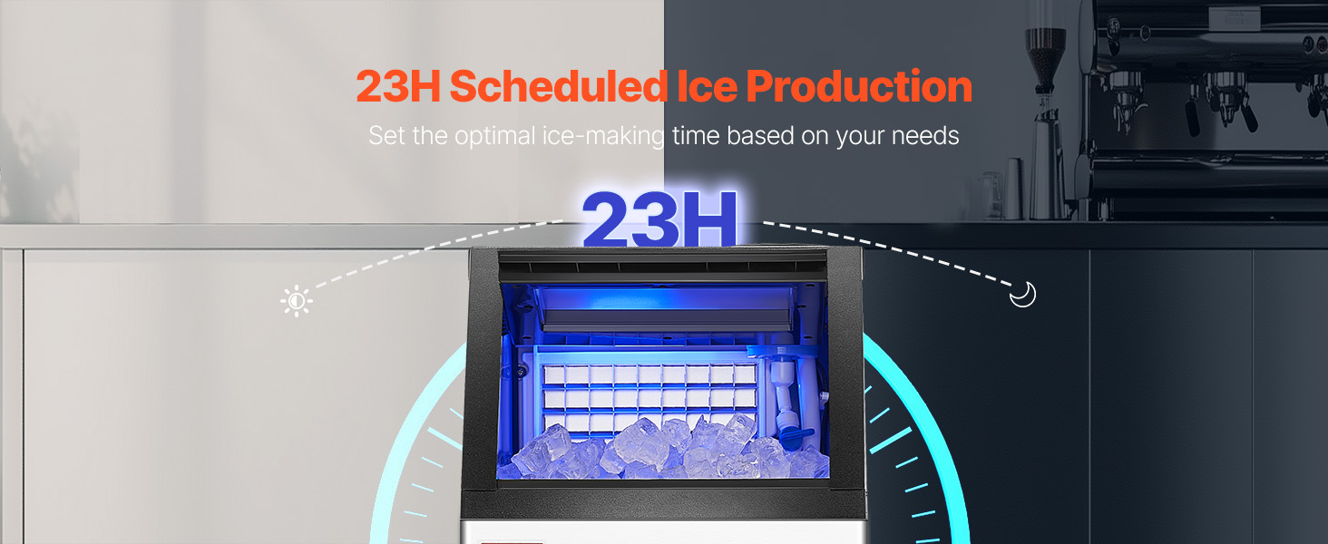 Our commercial ice maker produces 120 lbs of ice cubes per day, and the 8-hour insulation function allows you to have ice cubes whenever you want.