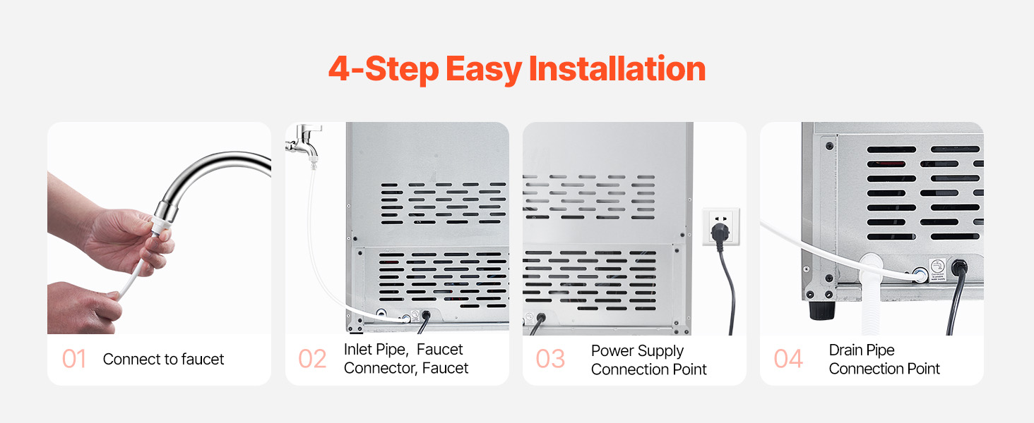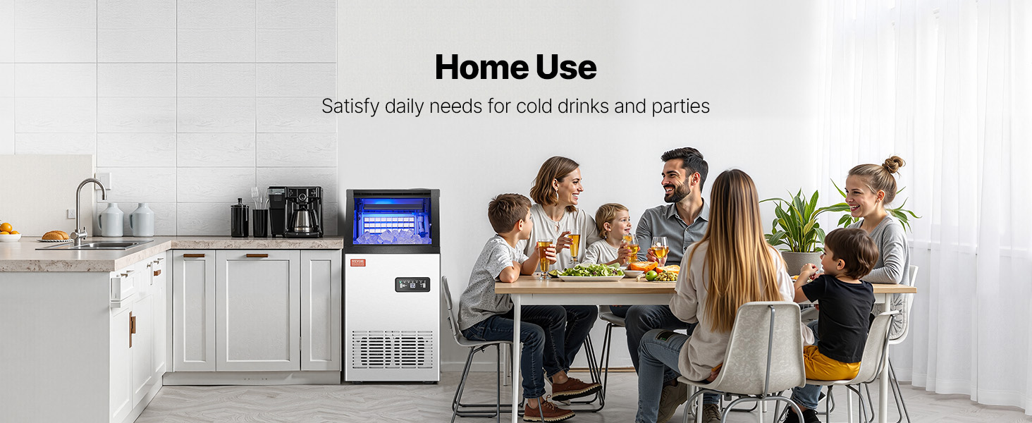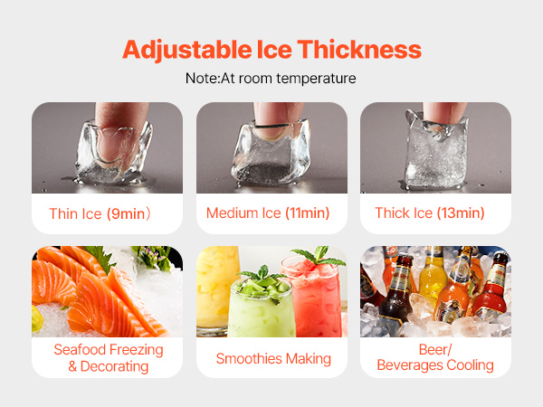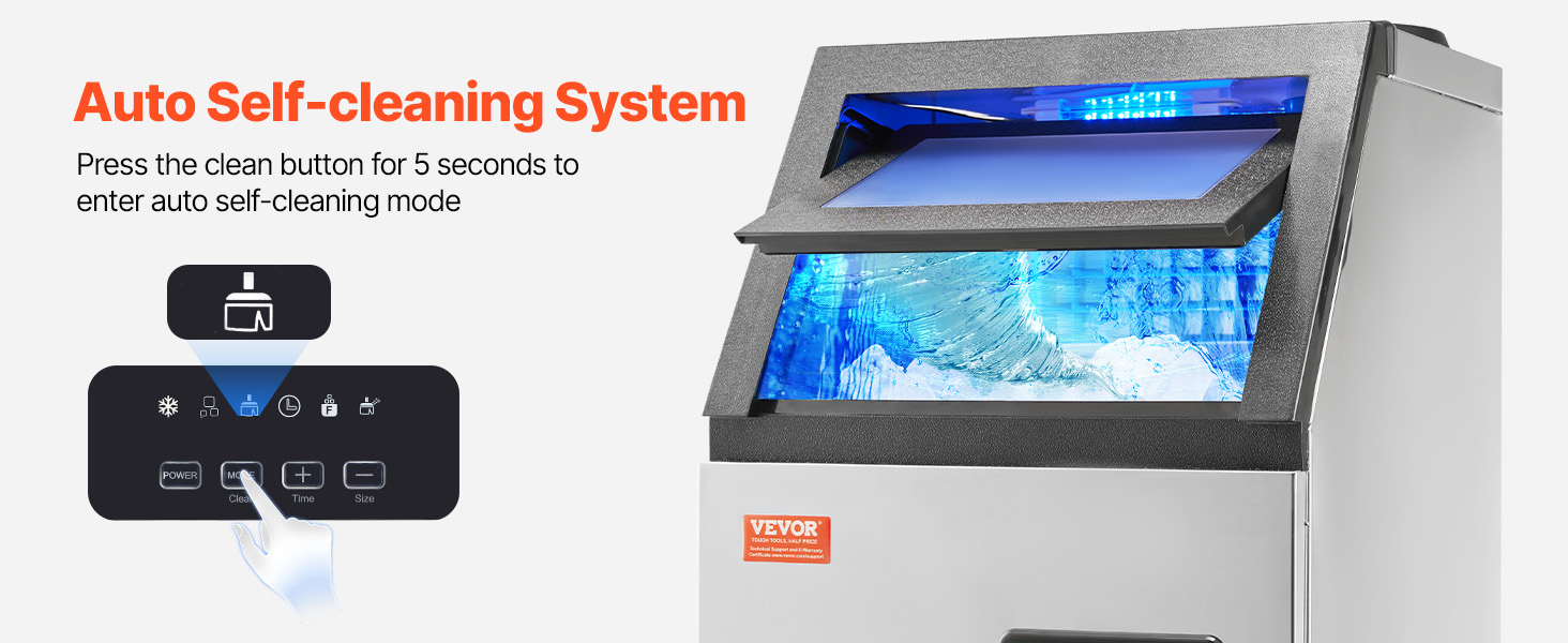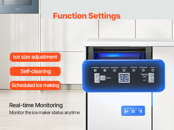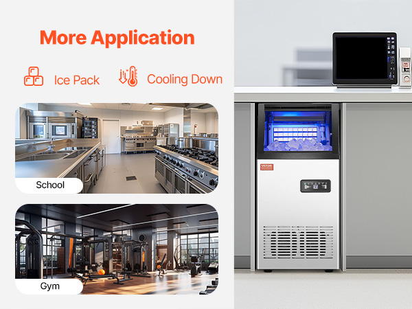 Our commercial ice maker produces 120 lbs of ice cubes per day, and the 8-hour insulation function allows you to have ice cubes whenever you want.