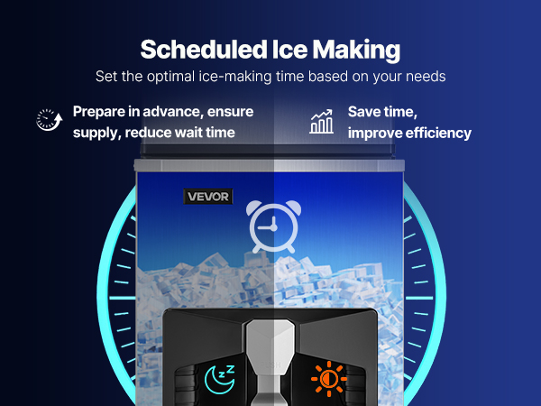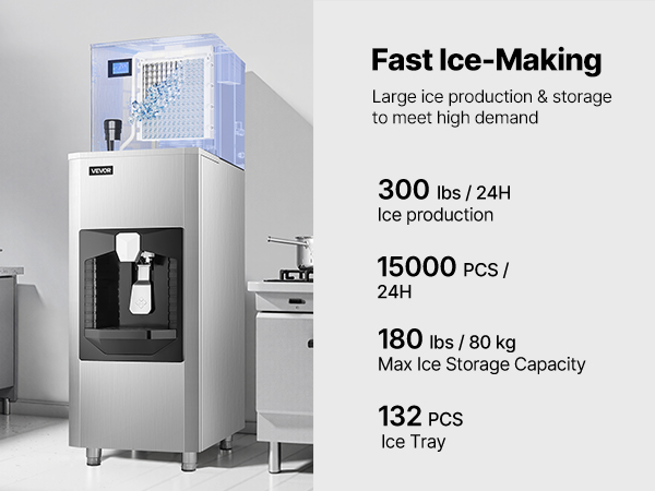Want chilled and refreshing ice? VEVOR commercial ice maker produces 300 lbs of ice cubes every 24 hours. It boasts 180 lbs large storage capacity and a longer thermal insulation effect, ensuring an uninterrupted ice supply that's ready to serve.