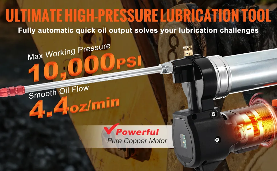 Our cordless grease gun packs a punch with a 200W pure copper motor, giving you that impressive 10,000 PSI power and pumping out 4.4 ounces of grease every minute.