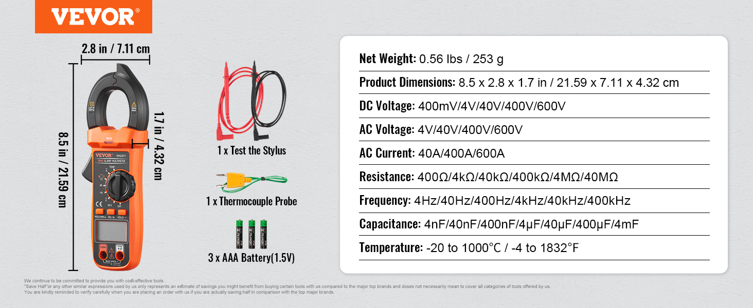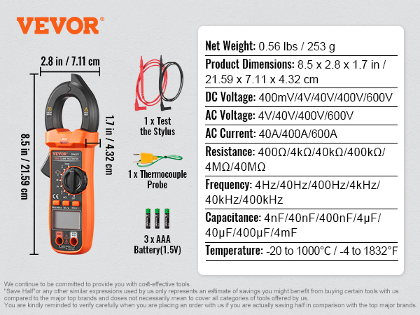 • Accurate Measurement: Elevate your accuracy game with the True RMS detection function! Say goodbye to measurement errors and enjoy peace of mind with its FCC and CE security certifications. Use this clamp multimeter with complete confidence!