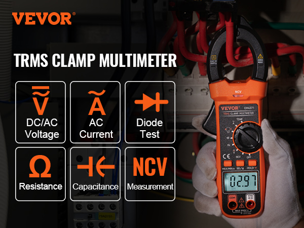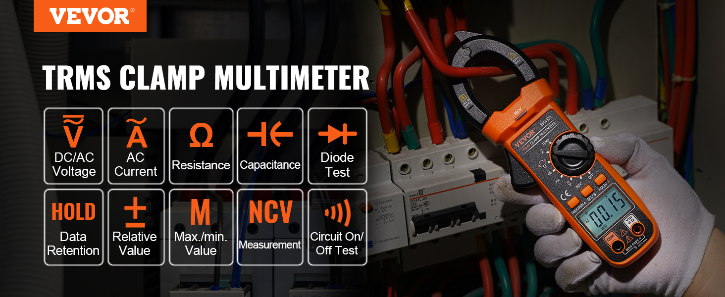Цифровий True RMS струмовимірювач VEVOR – змінна/постійна напруга, струм, NCV, опір, ємність, тест діодів
