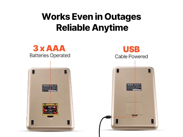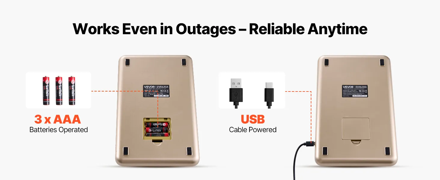 A: It offers multiple power options (3 x AAA batteries, or USB), so it's flexible and works even during outages.