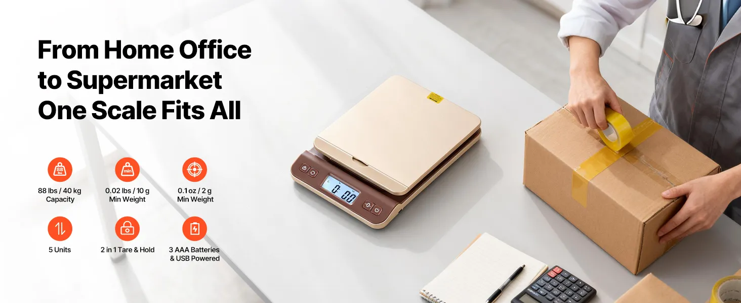 This postal scale handles parcels up to 88 lbs with 0.1oz precision, ensuring every weigh-in is accurate and reliable for shipping or daily use.