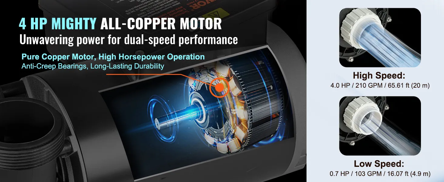 VEVOR 56 Frame Motor Dual-Speed SPA pump