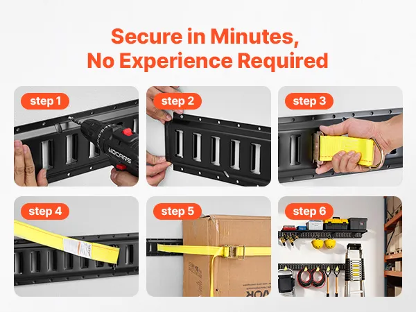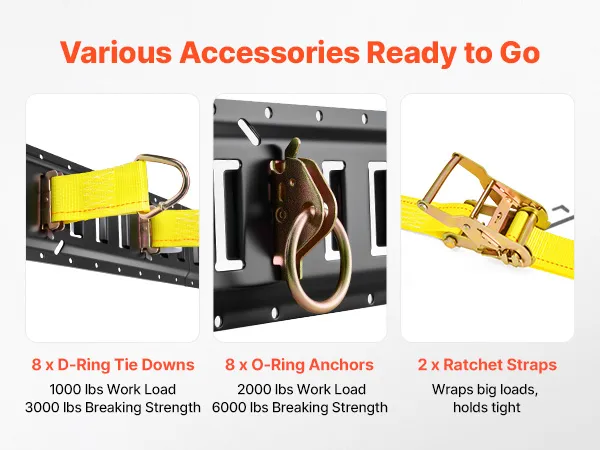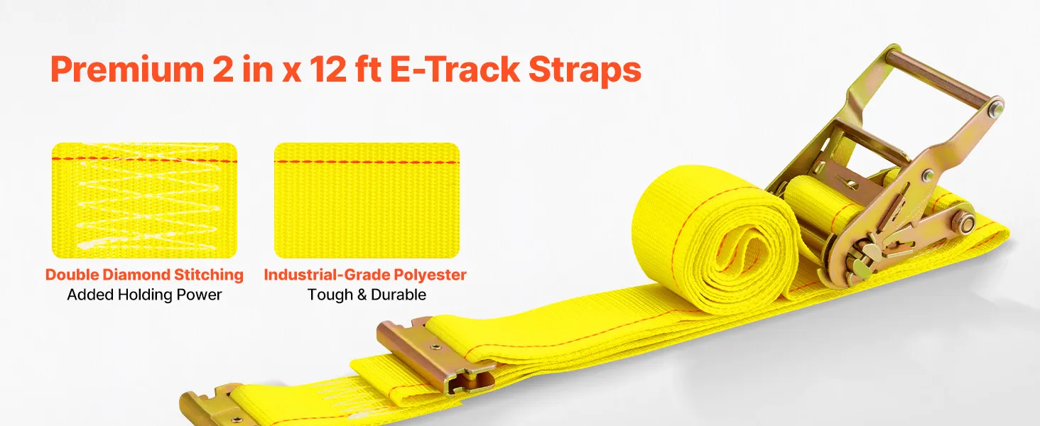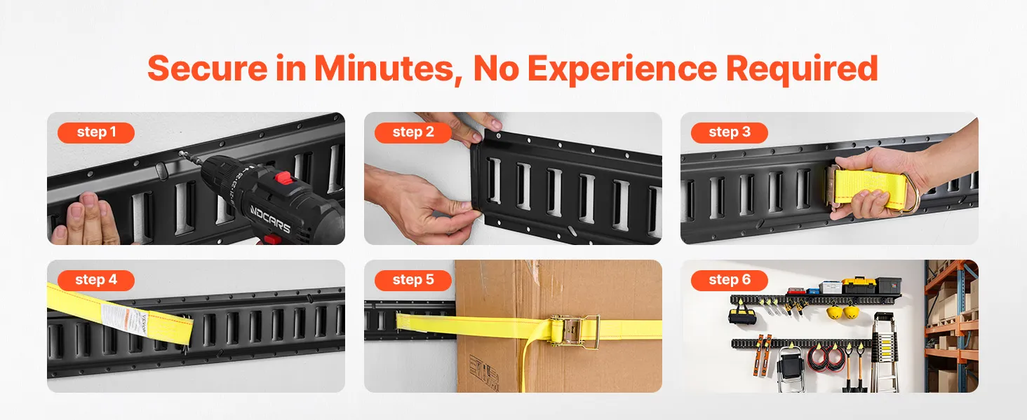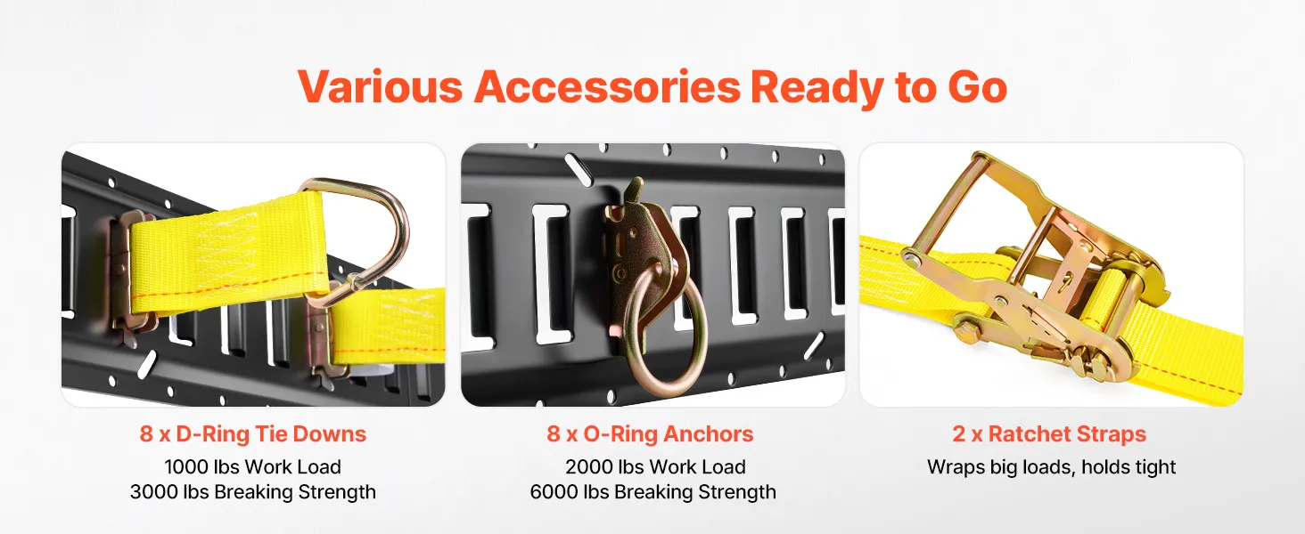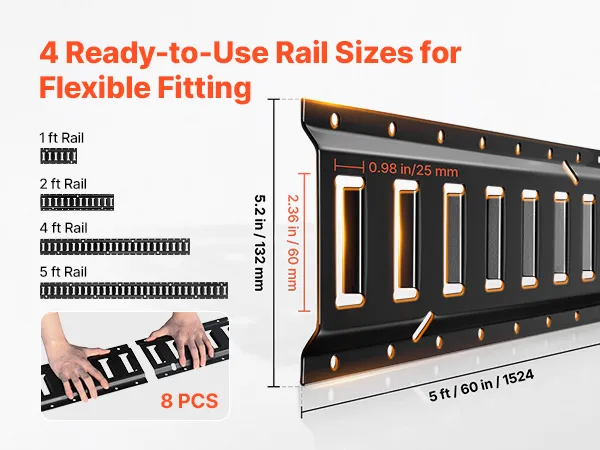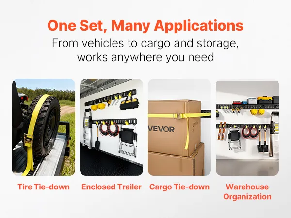 VEVOR E-Track Tie-Down Rail Kit, 8 Pack (1.5m+1.2m+0.6m+0.3m) E Track Rails, 36 Pcs Includes 2 Ratchet Straps & 8 O-Rings & 8 Tie-Offs with D-Ring & 2 Single Slots & 16 End Caps, Fit for Vans Trailers
