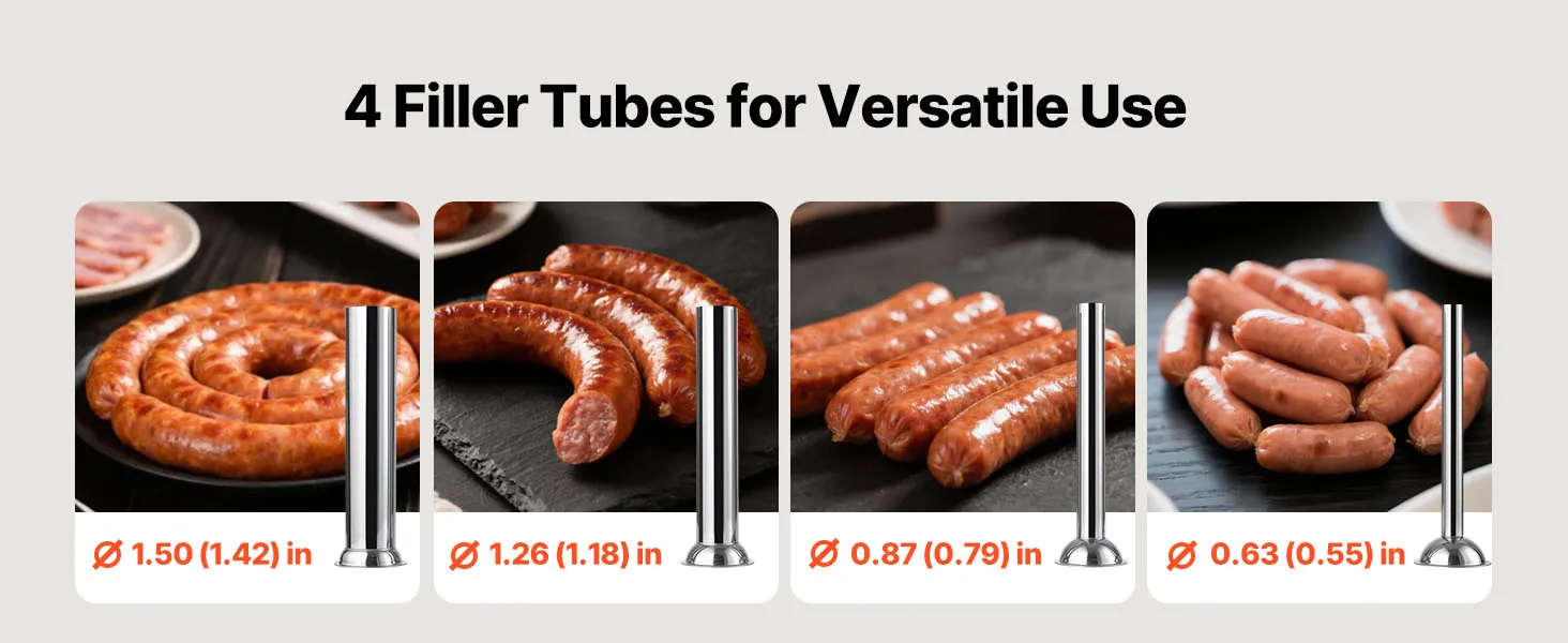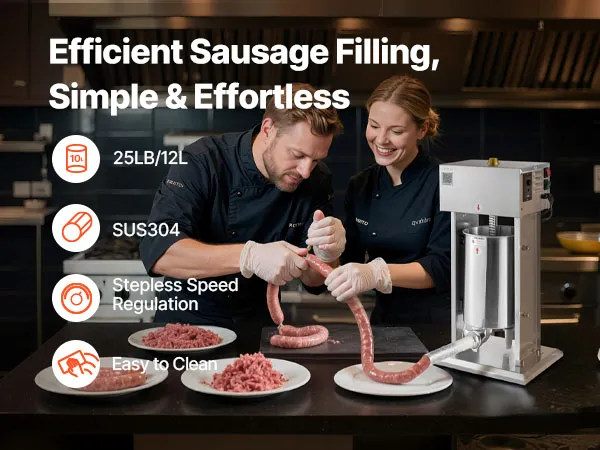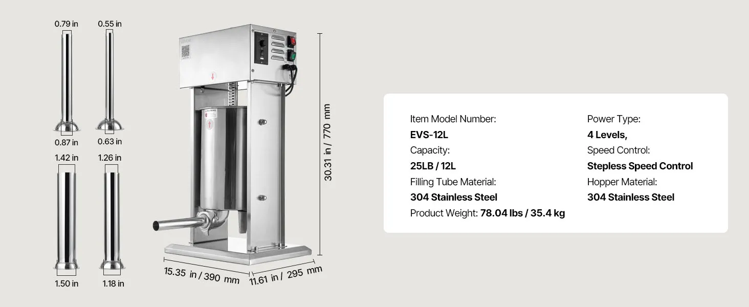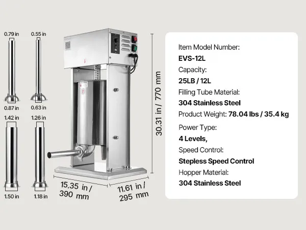 VEVOR Electric Sausage Stuffer, 25 LBS / 12 L Vertical Meat Stuffer, Stepless Speed Control and Foot Pedal, Stainless Steel Heavy Duty Sausage Filler with 4 Stuffing Tubes, for Commercial & Home Use
