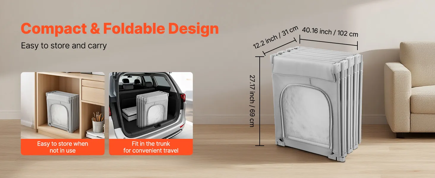 The foldable design makes storage a breeze—just collapse it when not in use. Compact enough to fit in your car trunk, this play yard for babies toddlers is perfect for outdoor travel, the beach, park, or family visits.