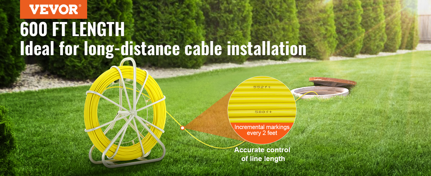 Our fish tape meets the requirements for long-distance wiring projects. The wire is marked every 2 feet on the surface, allowing for more precise control of the wire length during construction.