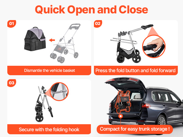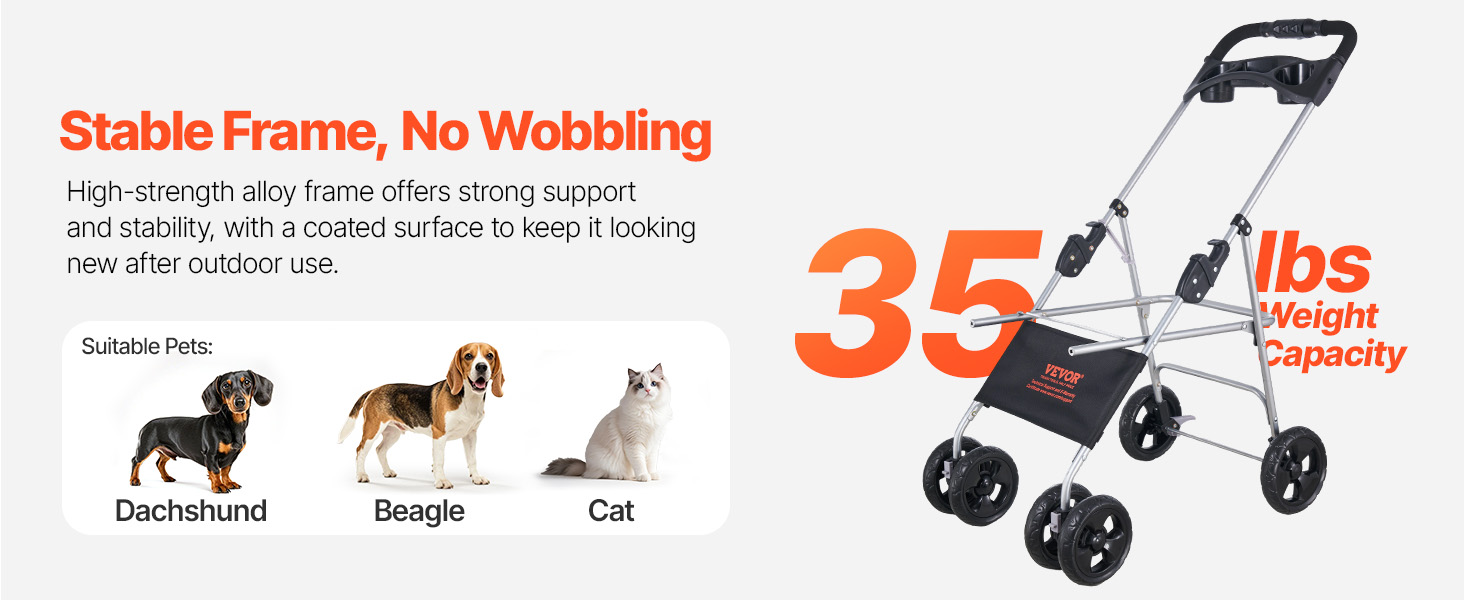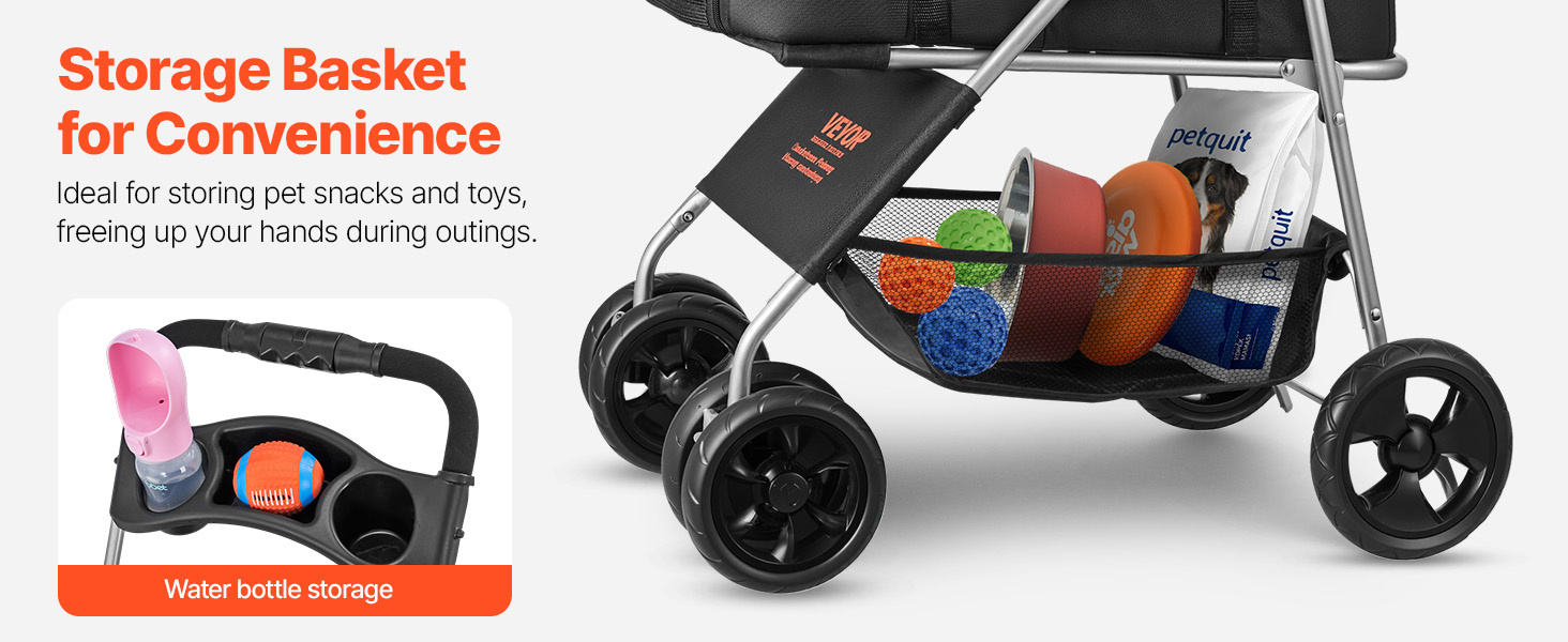 Experience ultimate convenience with this pet stroller! Made from 600D Oxford fabric, it supports up to 35lbs and features 3 entrances with breathable mesh windows. Fold it in seconds, store it compactly, and enjoy smooth rides on flexible wheels. Ideal for aging, injured, or multi-pet families.