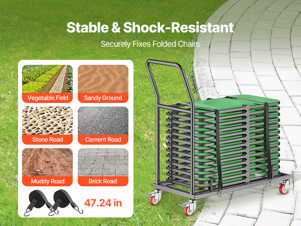 VEVOR Folding Chair Rack, 300 LBS Capacity, L-shape Horizontal Placement Chair Cart for 25 Chairs, Heavy-duty Metal Chair Storage Dolly with Rubber Wheels and Holders, Large Chair Holder, Matte Black