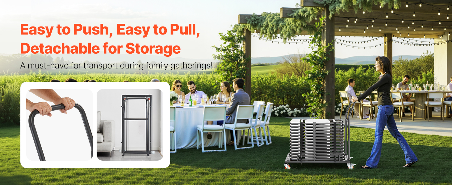 This dining chair cart seamlessly combines convenient transportation with space-saving design, making it perfect for a variety of settings such as events, conferences, and more. It is the ideal solution for families and schools looking to efficiently arrange and store dining chairs.