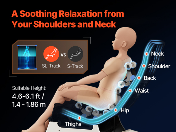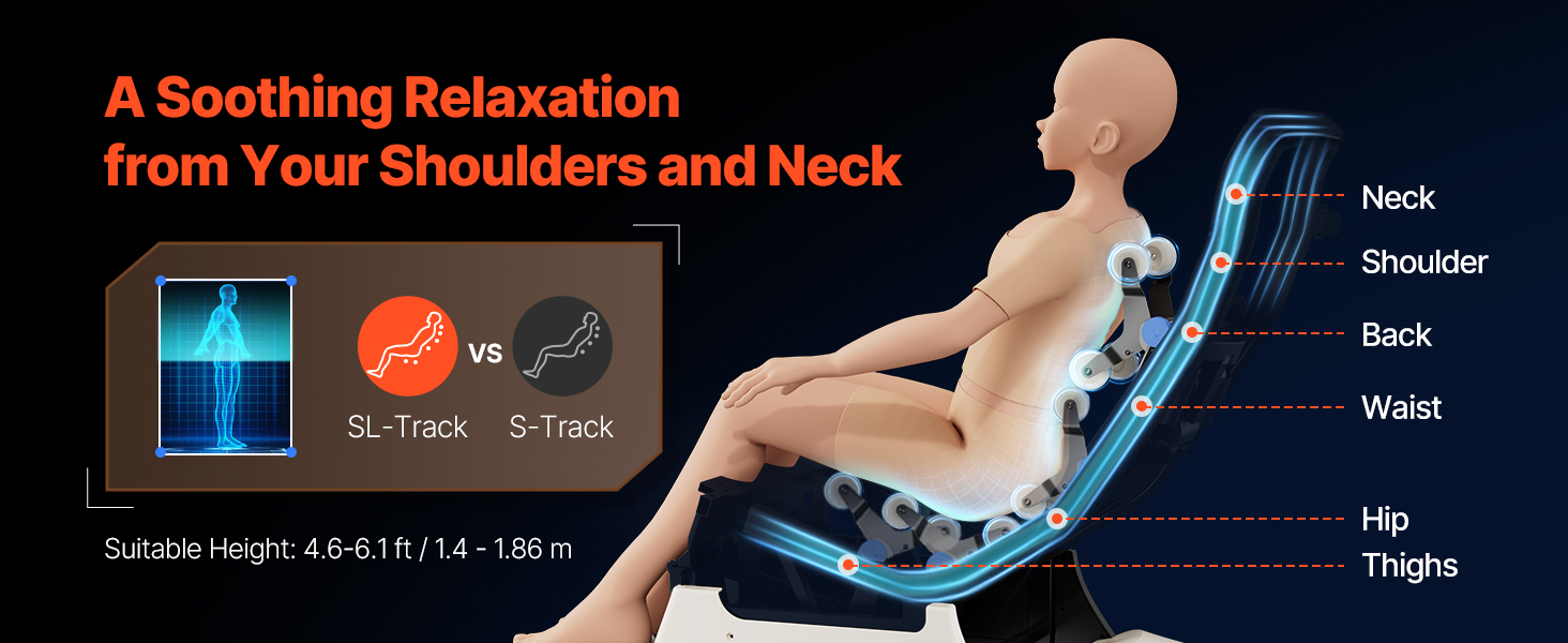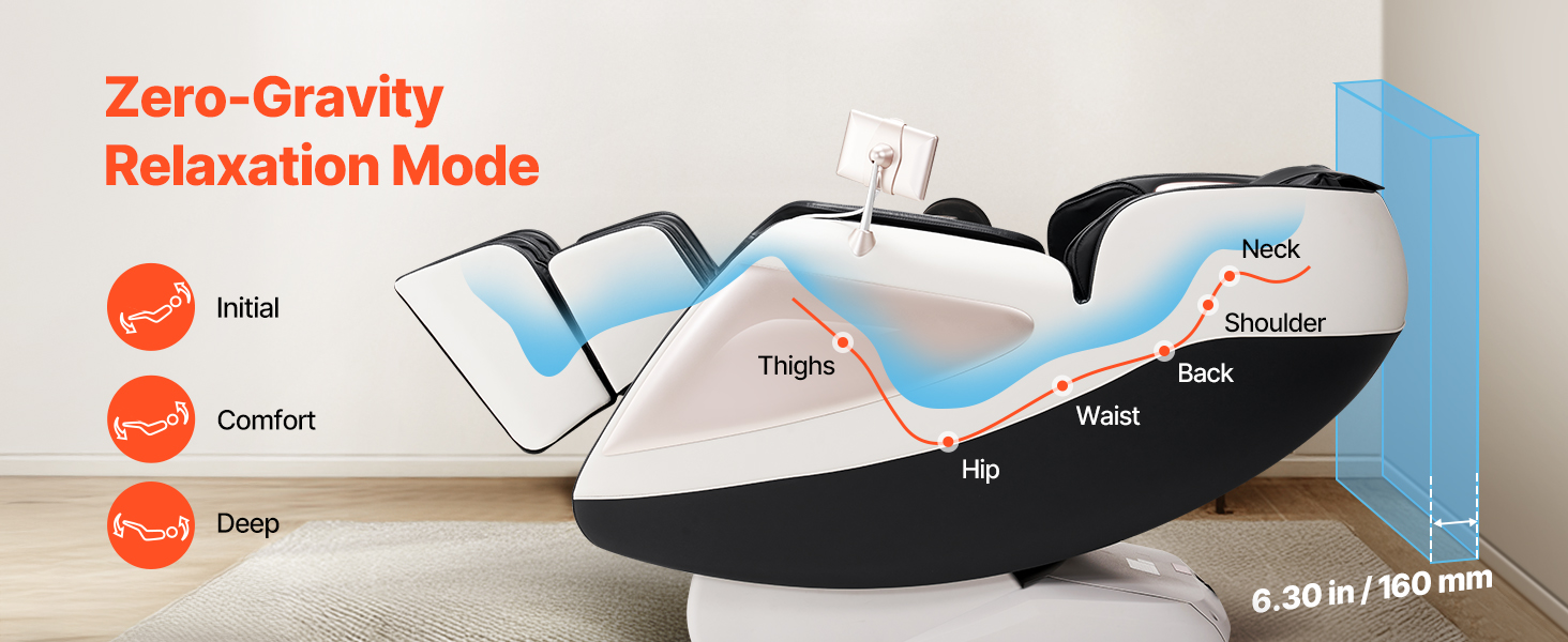 VEVOR 3D масажне крісло для всього тіла зі SL-напрямною, 18 режимів, підігрівом, Bluetooth, LCD, 36 повітряних подушок