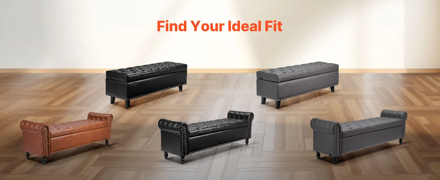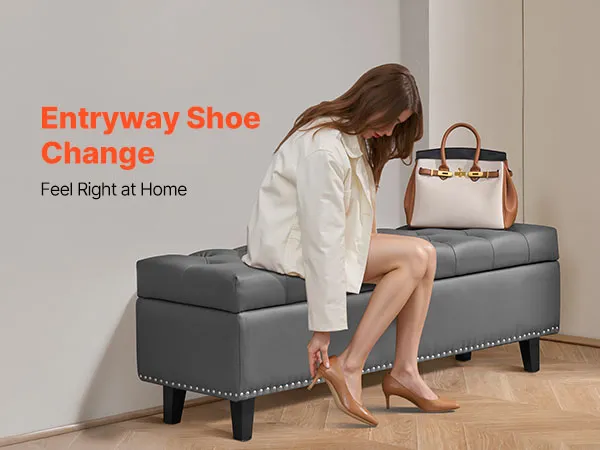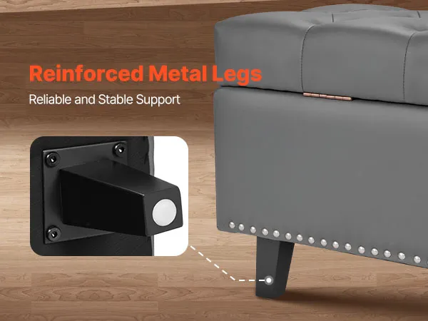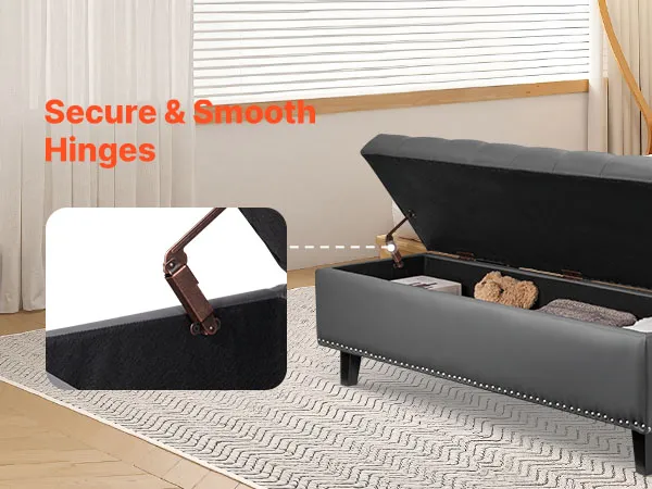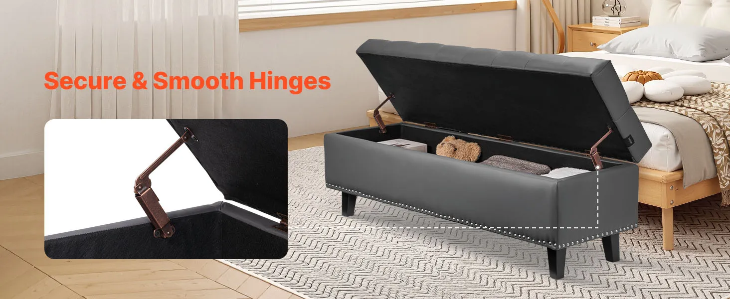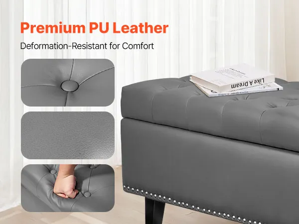 This PU leather bedroom bench features a hidden storage compartment, reliable weight capacity, and plush comfort—bringing both beauty and practicality together for a more organized and stylish bedroom.