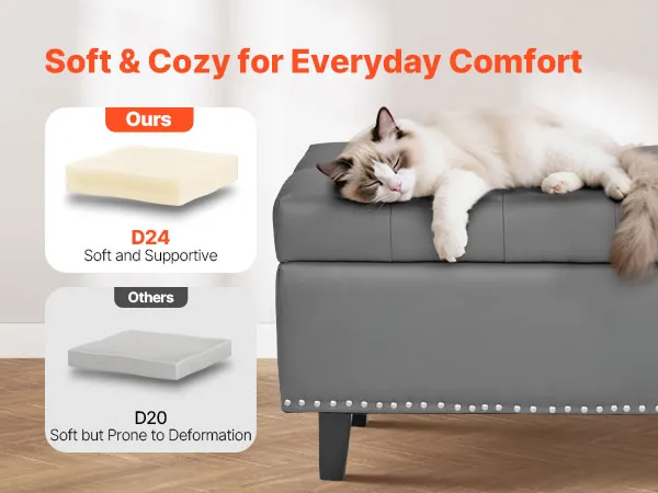 A1: These versions use D24 high-resilience foam, delivering a soft yet supportive sitting experience. Built with solid rubberwood legs, they combine style and practicality—ideal for bedrooms, entryways, or smaller spaces.