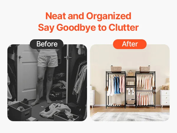 This clothes rack keeps clothes neatly arranged, maximizes indoor space, and makes it easy to find what you need. Ideal for daily wear or seasonal items, it helps maintain a tidy, attractive home while providing a comfortable and convenient storage experience.