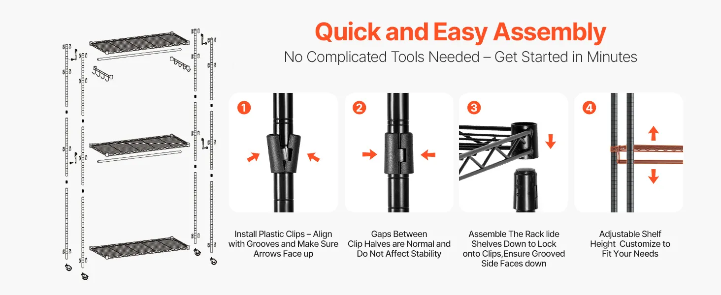 Designed for user convenience, this hanging clothes rack can be quickly and easily assembled without tools or special skills. Plastic clips and slide-in connectors ensure a secure setup in just a few simple steps, letting you enjoy efficient storage right away.