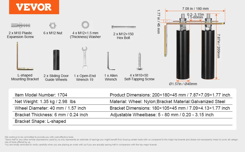 This sliding door guide system features a durable, rust-resistant steel bracket and dual nylon rollers for smooth, quiet operation. It’s easy to install, compatible with various tracks, and ensures long-lasting performance with low maintenance.