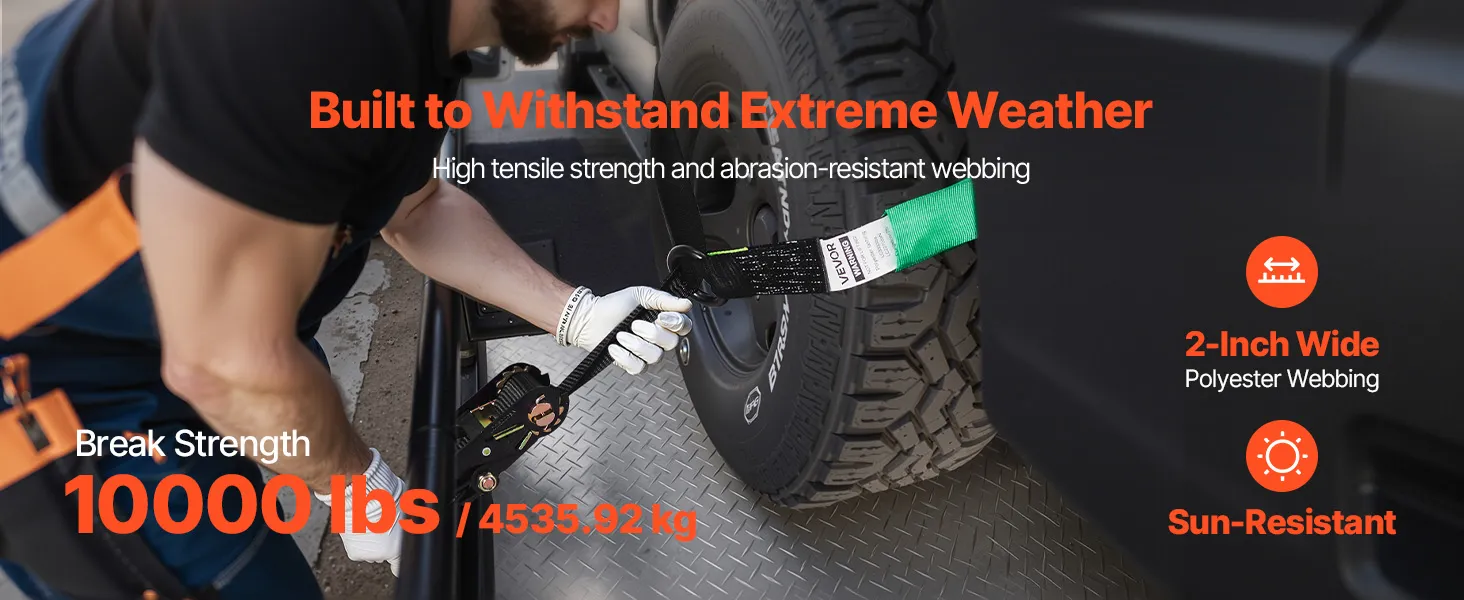 Crafted with tightly woven polyester, this trailer tie down strap stands strong against wear and abrasion. Built to handle everything from desert heat to coastal humidity, the premium webbing ensures consistent performance and long-term reliability trip after trip.