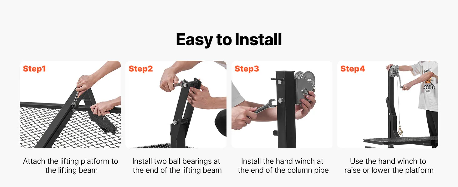 The platform-style hitch game hoist installs in just 4 simple steps, making setup quick and hassle-free.