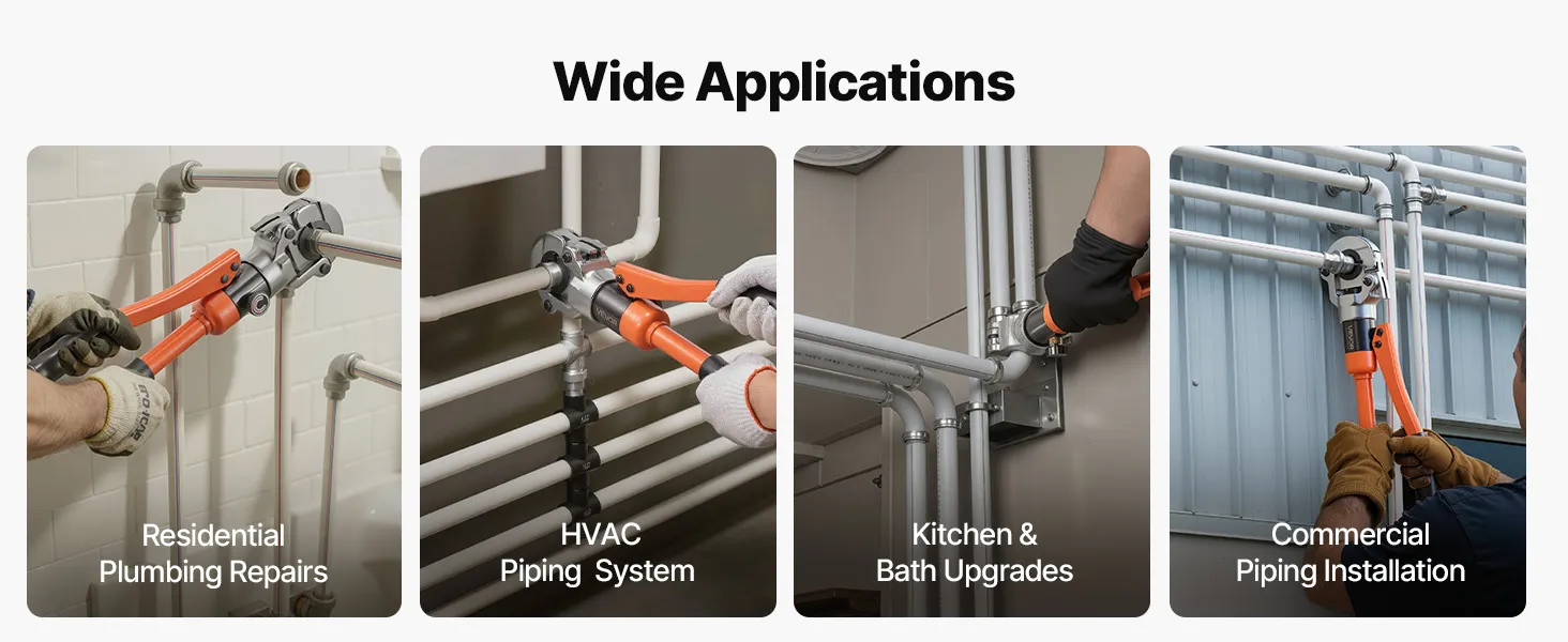 • Wide Applications: Whether for pipe installation and repair in residential plumbing, HVAC systems, and industrial piping project, our hydraulic-driven pipe crimping tool provides stable and secure pipe connections, ensuring efficient and reliable performance