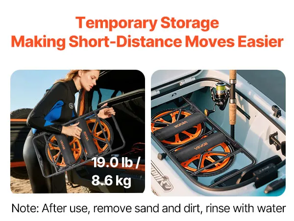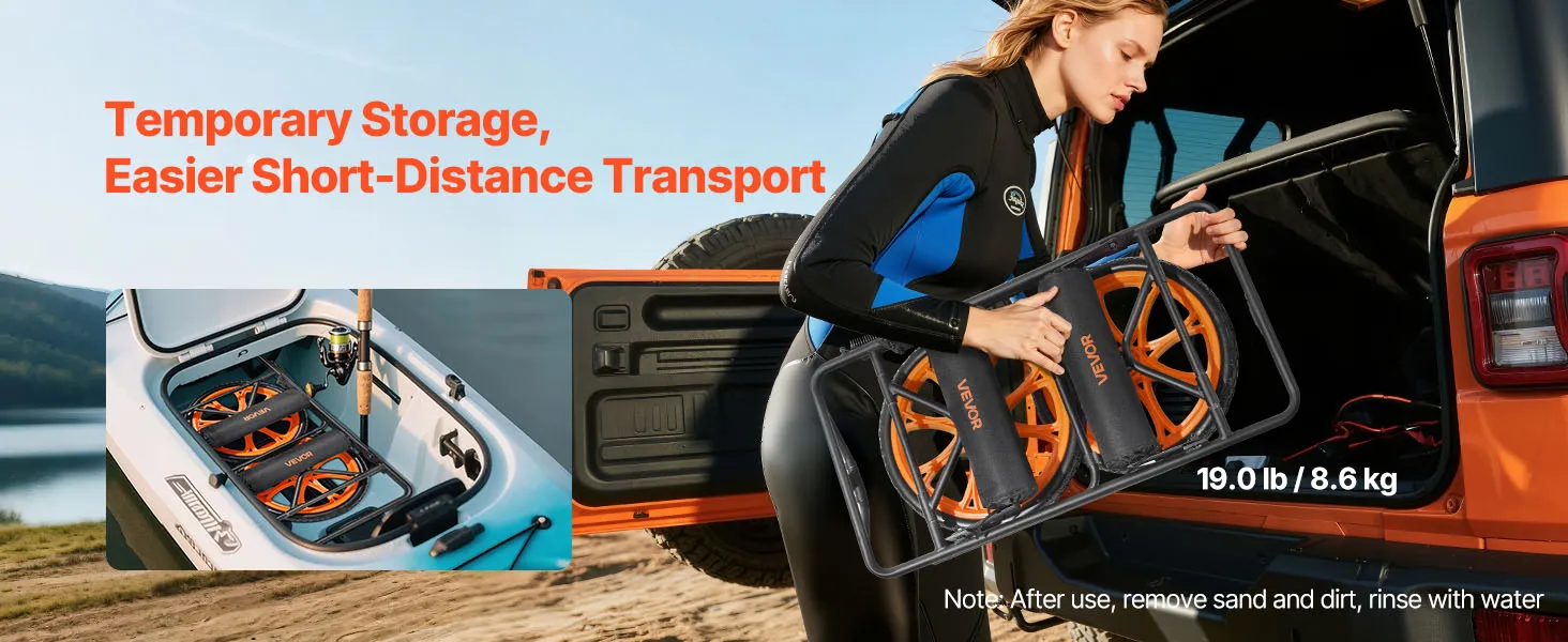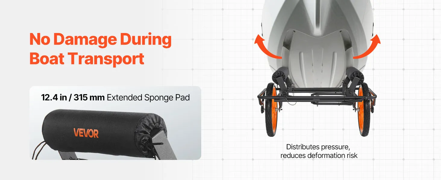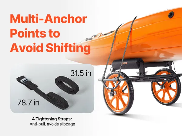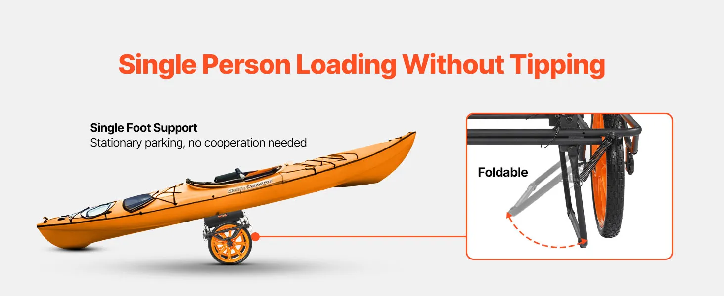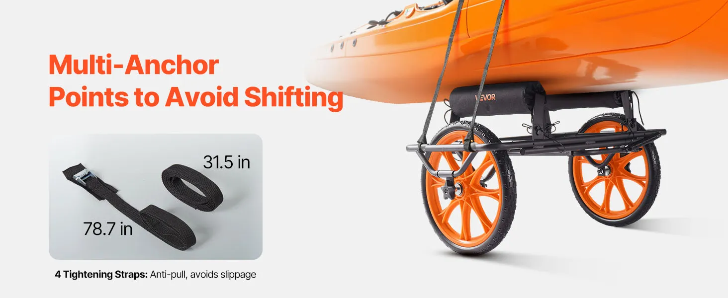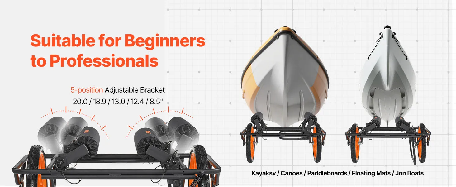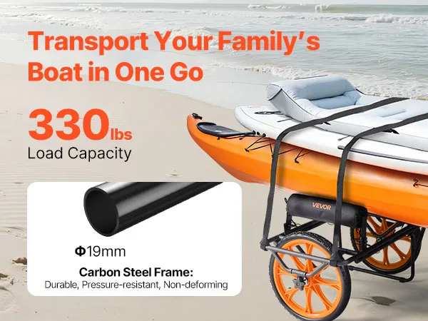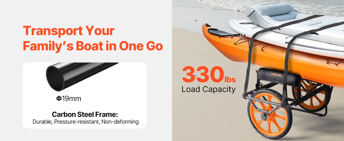 This kayak cart's 330 lbs capacity makes it fit for transporting small boats or kayaks with gear. It's easy to move, secure, and ideal for casual outdoor outings and light transport.