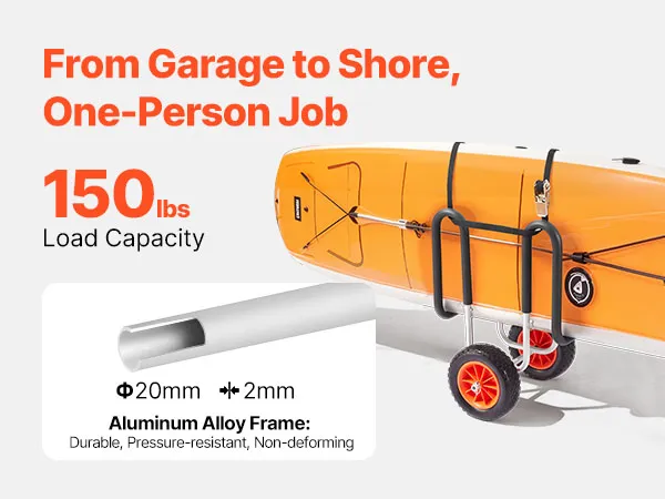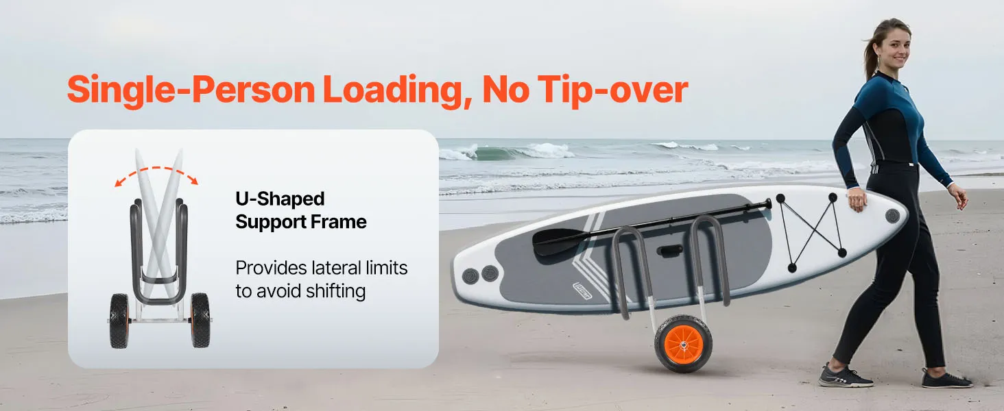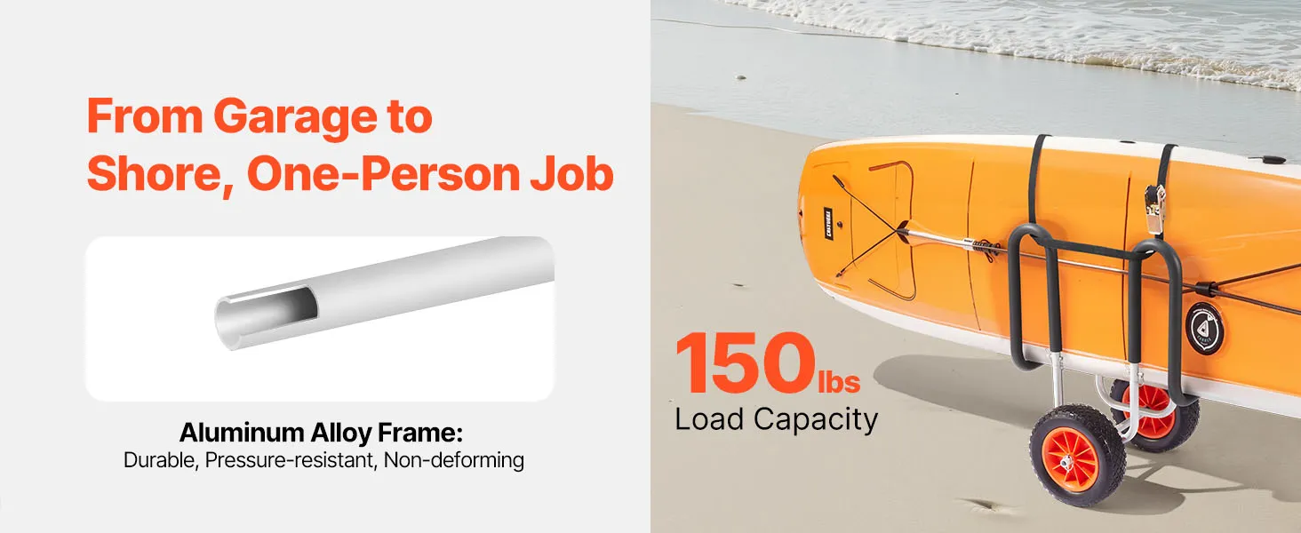 VEVOR візок для каяка та SUP, вантажопідйомність 68 кг, шини 25,4 см, складаний з ременем і підставками для зручного транспортування