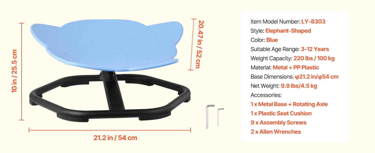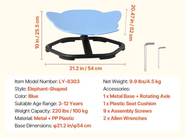 VEVOR дитяче сенсорне крісло-слон, 100 кг, з металевою неслизькою основою, для балансу та координації, синє