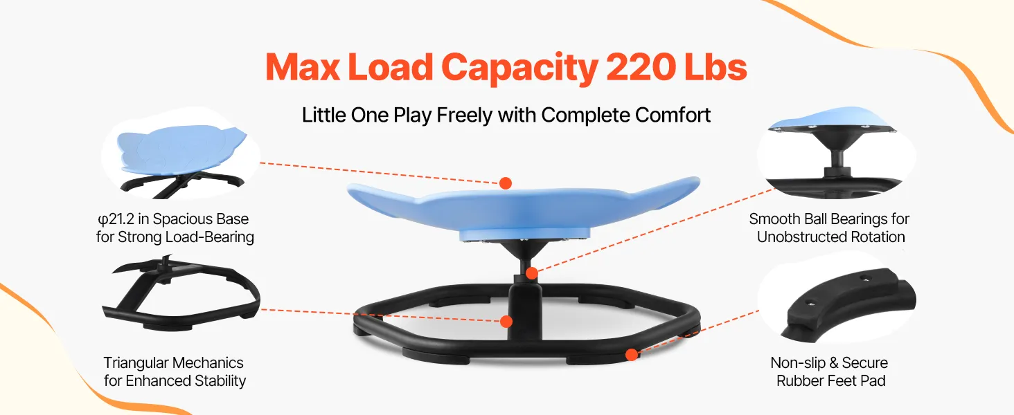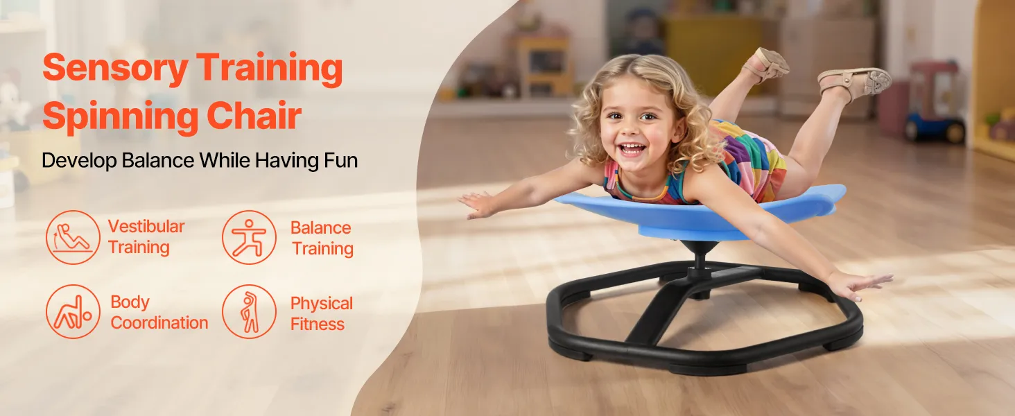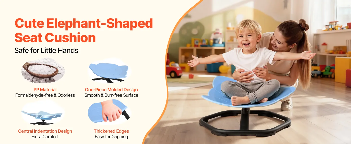 • 360° Swivel Chair: This kids swivel chair turns into a playground for kids. Spinning helps stimulate their vestibular system, strengthens grip, core muscles, and improves coordination and balance while promoting brain development