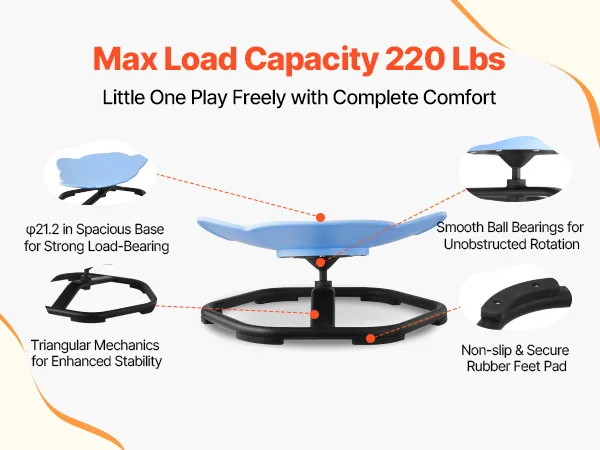 • Fun Ways to Play: More than a fixed kids spinning chair, kids can sit, lie down, spin, and play in various ways, creating their own fun. Parents can join the fun too, making it a great parent-child interactive toy
